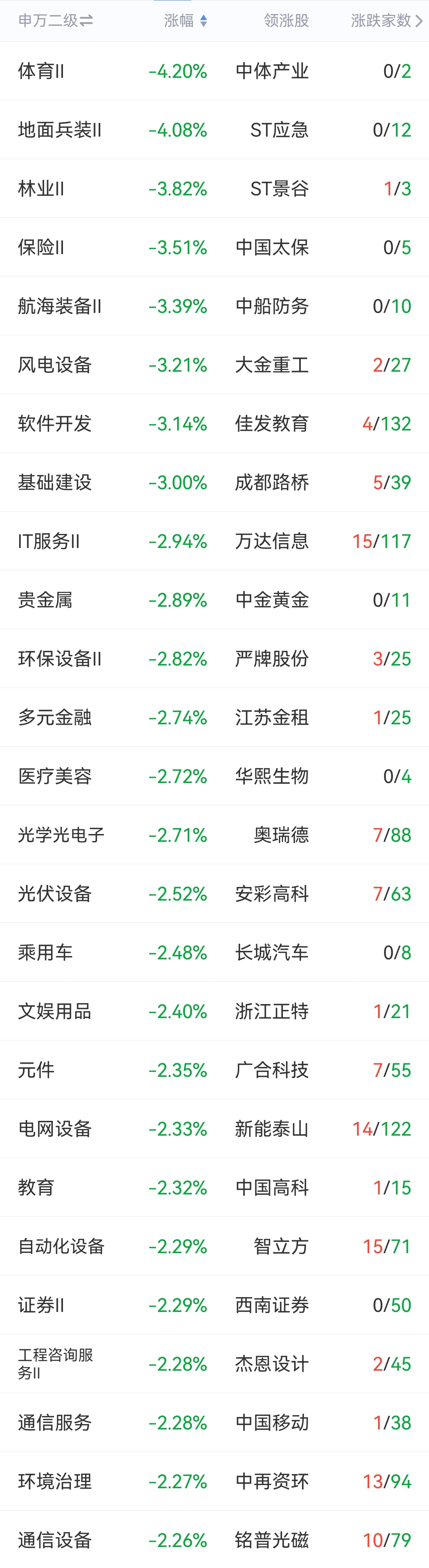 跌幅居前板块传统产业的体育文娱教育、林业、基建、环保、贵金属、医美、电网设备、工程咨询、通信服务等,热点中的国防军工(兵装、航海)、新能源(风电、光伏、汽车)、信安(IT、软件)、证券和多元、光学光电子、通信设备和元件、智能制造(自动化设备)等跌幅居前。
