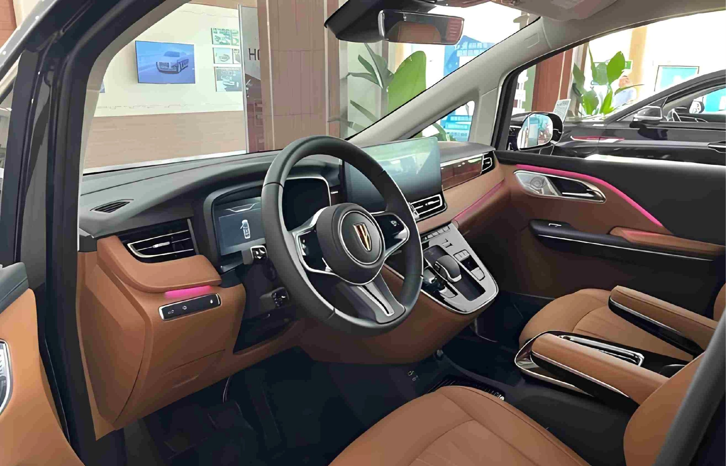 动力系统用了一台2.0T发动机和前后双电机,百公里加速时间8.1秒,比同级别的1.5T车型快不少,亏电情况下油耗是7.5升,综合油耗只有2.2升,这不是靠大电池硬撑出来的低油耗,而是因为发动机热效率高,电控调得细致,能量回收做得扎实,商务车经常需要跑长途,拉人载货,动力必须够用,安全也要有足够保障。