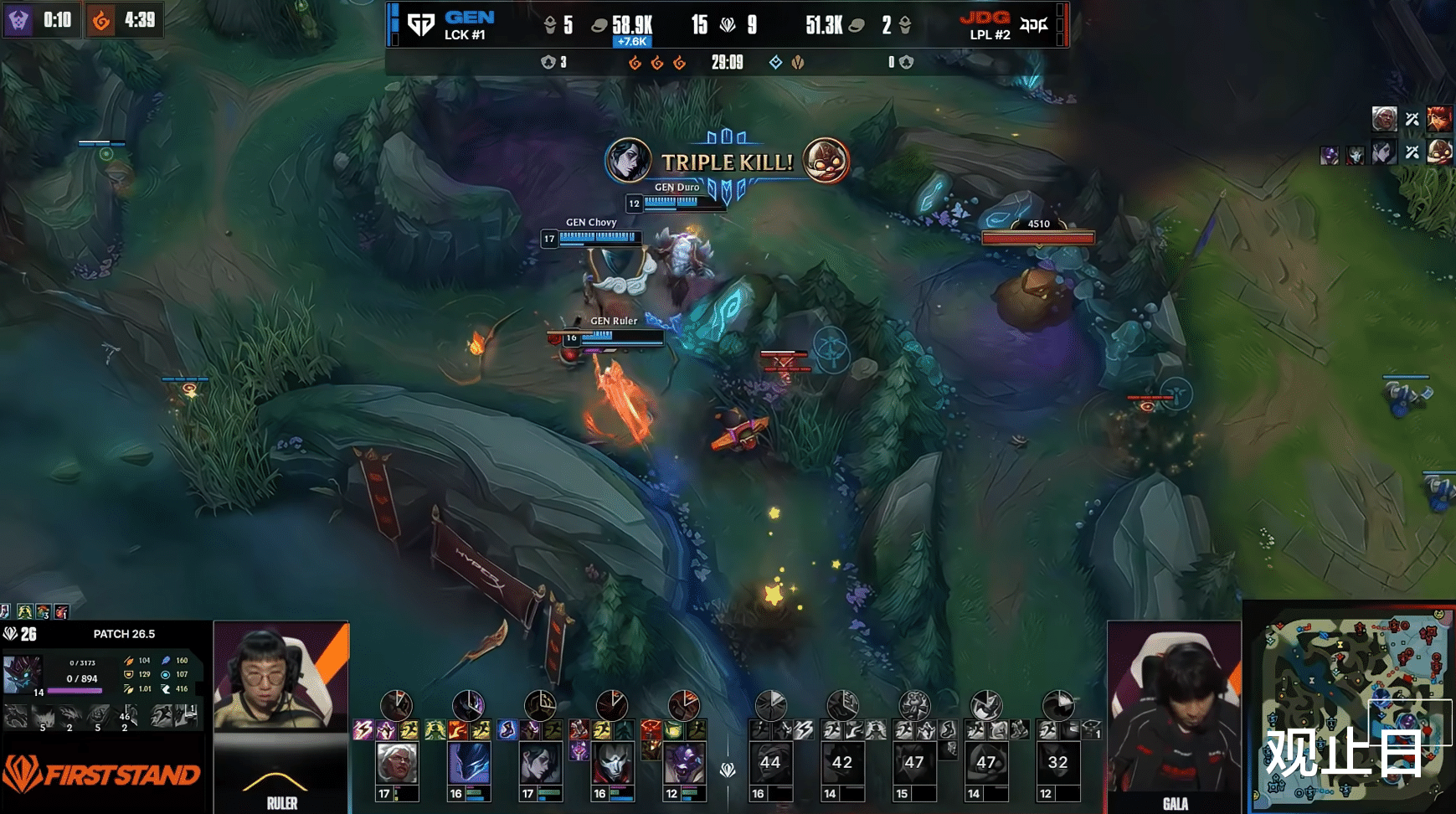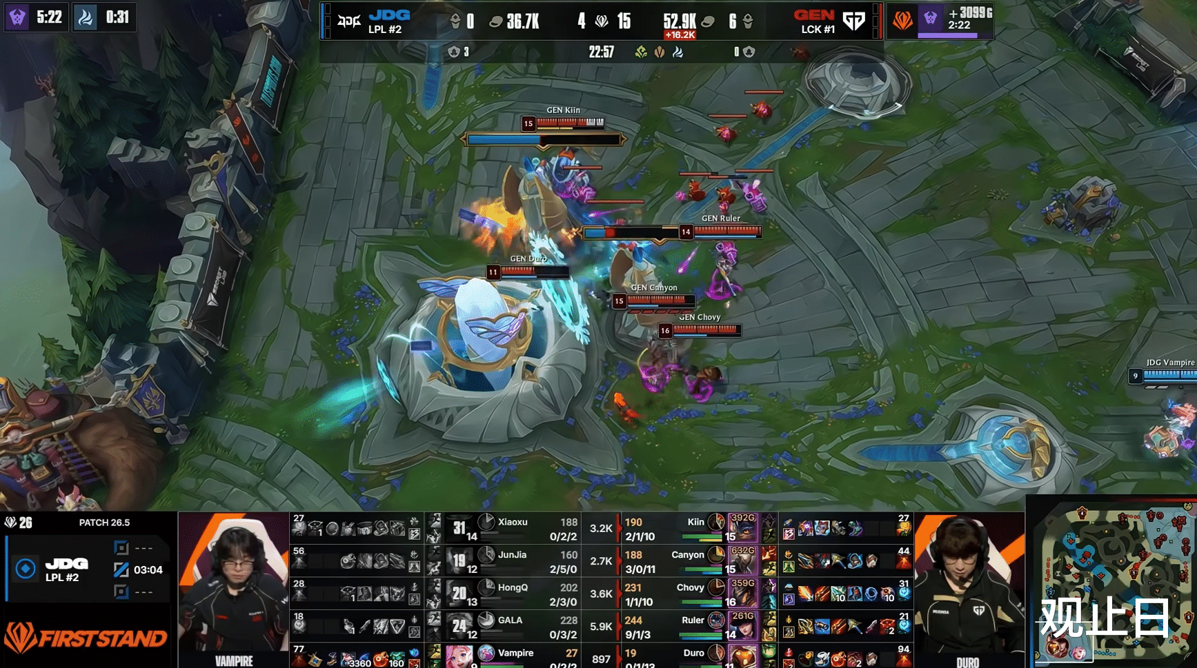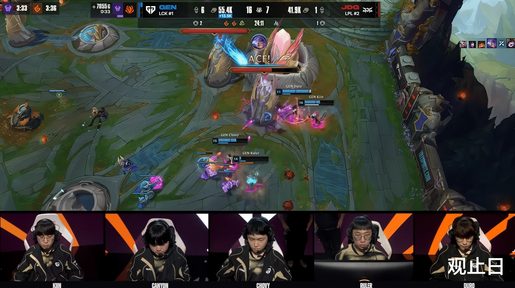 但下一波团战,Chovy的慧伤害太爆炸,JDG团战依然不敌。第29分钟,GEN团灭JDG一波推平,3-0速通下班。