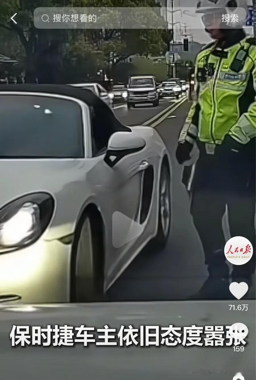 很快,执勤的交警赶到现场,本以为有执法人员在,事情能顺利解决,保时捷车主能认识错误、赶紧挪车。