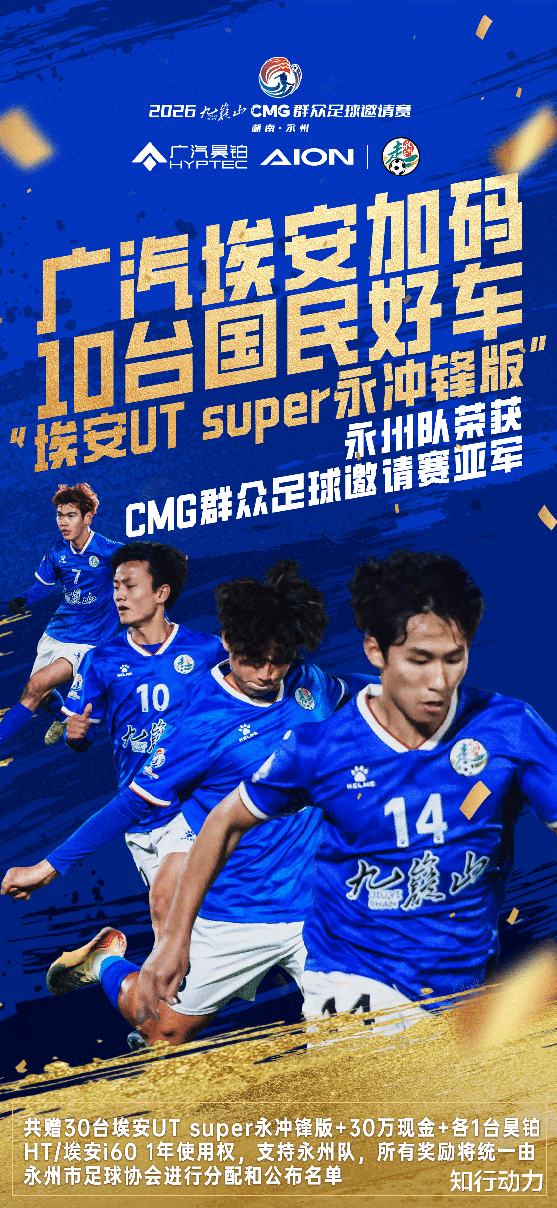 至此,广汽埃安承诺的奖励——总计30台埃安UT系列“永冲锋”版、30万元现金,以及昊铂HT、埃安i60各一年使用权,已完成大部分交付。剩余6台埃安UT系列“永冲锋”版,将于2026新赛季永州队主场作战时,通过抽奖形式回馈广大球迷。