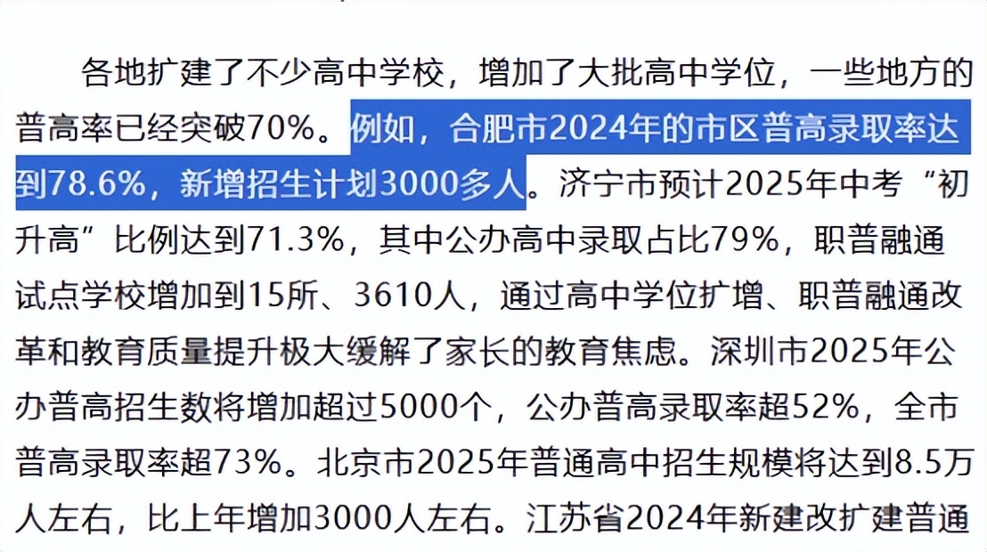 在很多城市,普高的录取率已经悄悄提高到了70%甚至85%,这意味着有更多的孩子能够顺利进入普通高中学习。