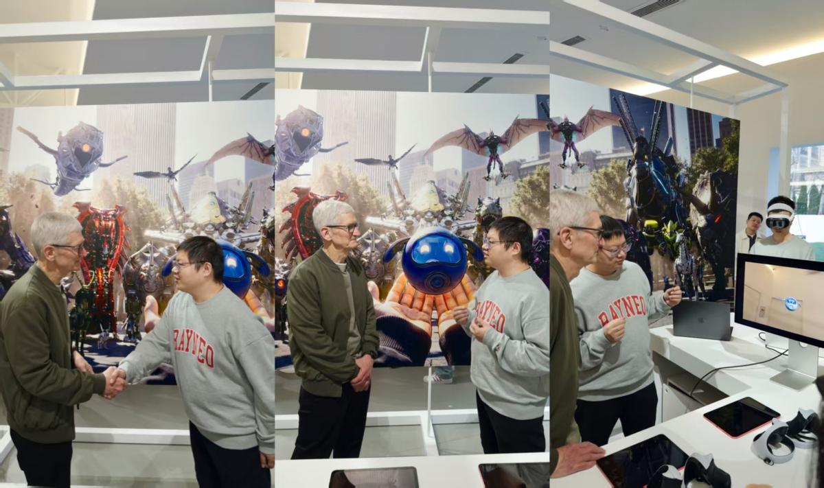 这堂公开课的最高潮,是雷鸟创新游戏负责人与苹果CEO蒂姆·库克的同台对话。库克为何亲自为一家中国AR公司站台?因为雷鸟创新展示的,正是苹果所畅想的空间计算未来——一个从硬件底层到应用生态完全打通的体验闭环。作为是业内唯一拥有光学全链路自研量产能力的公司,这种硬核技术壁垒,让它有资格成为苹果的“生态合伙人”,而非简单的开发者。