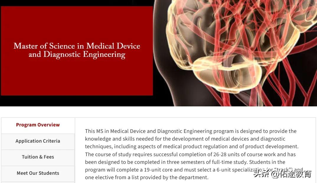 美国的南加州大学的Master of Science in Medical Device and Diagnostic Engineering,提供将工程学与法规事务、临床评价、质量管理深度整合的硕士项目。