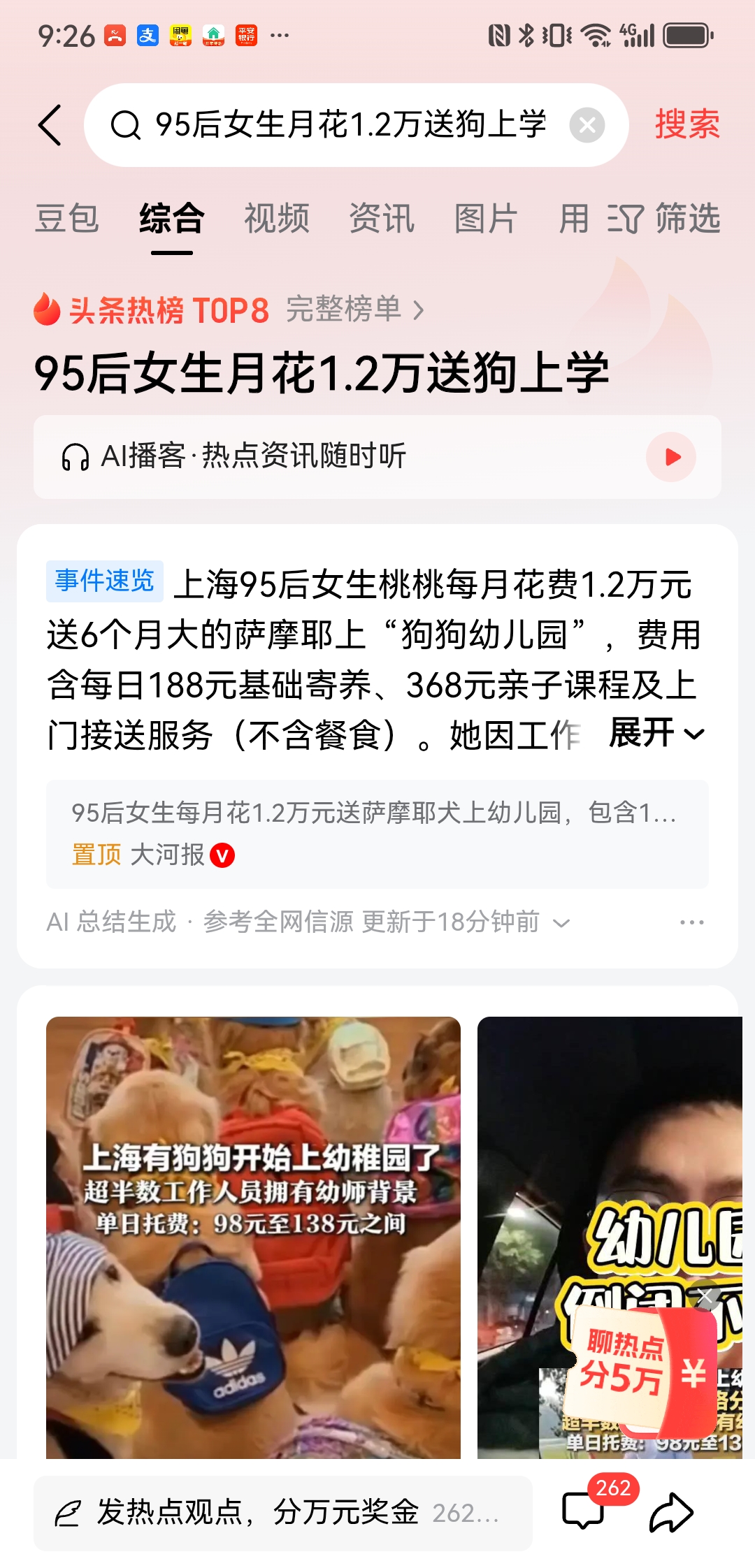 近日,上海一位95后女生每月花费1.2万元送6个月大的萨摩耶上“狗狗幼儿园”的新闻引发热议。这笔费用包含每日188元的基础寄养、368元的亲子课程及上门接送服务,甚至不包含宠物的餐食。当事人表示,因工作繁忙无暇陪伴,才选择此项服务。