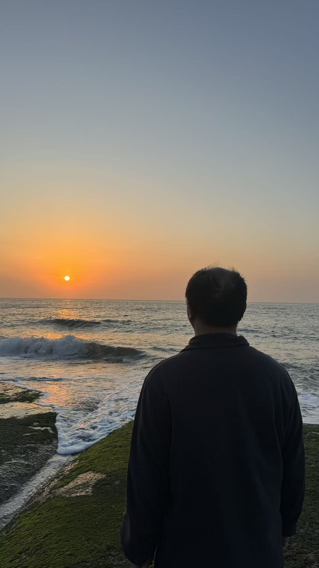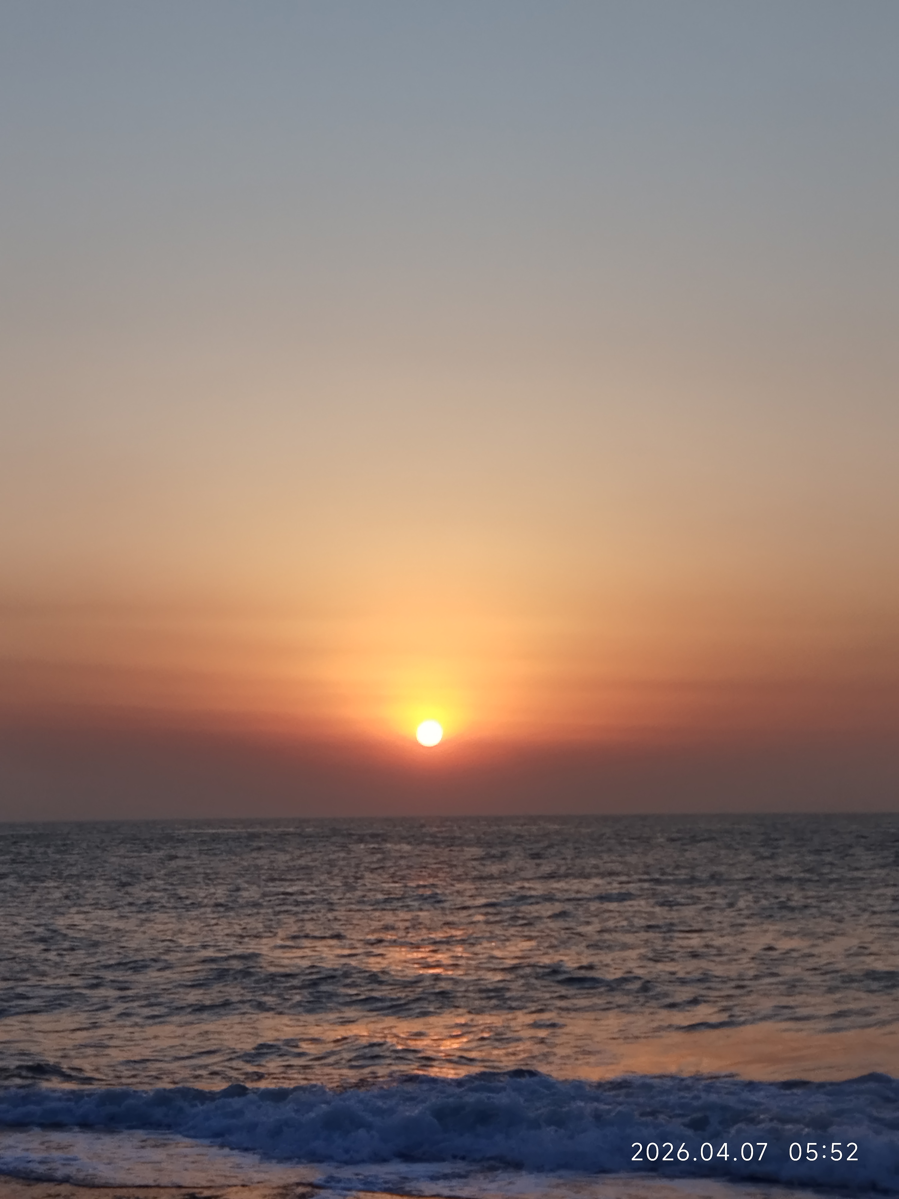 我是第一次在海边等待日出,当我看到太阳从地平线升起来,我在冷风中瑟瑟发抖,我也值了。