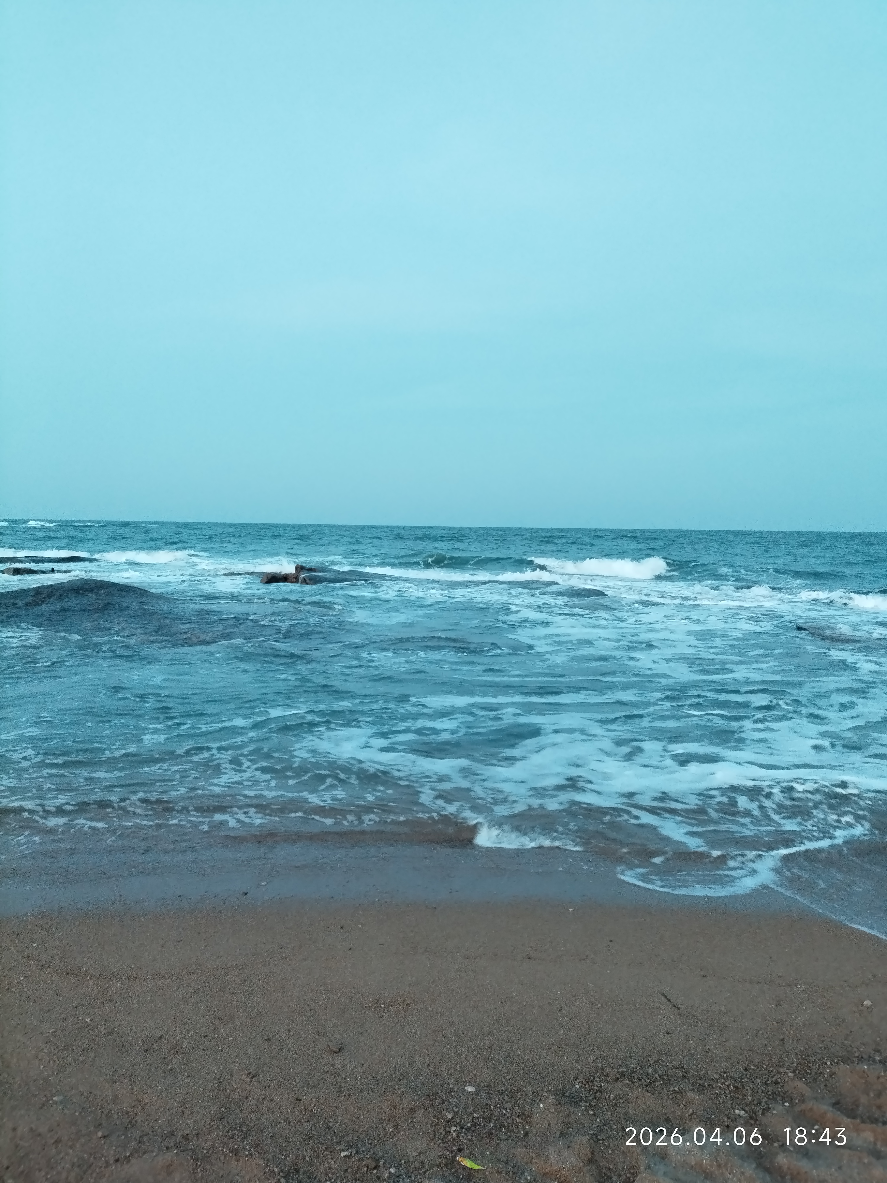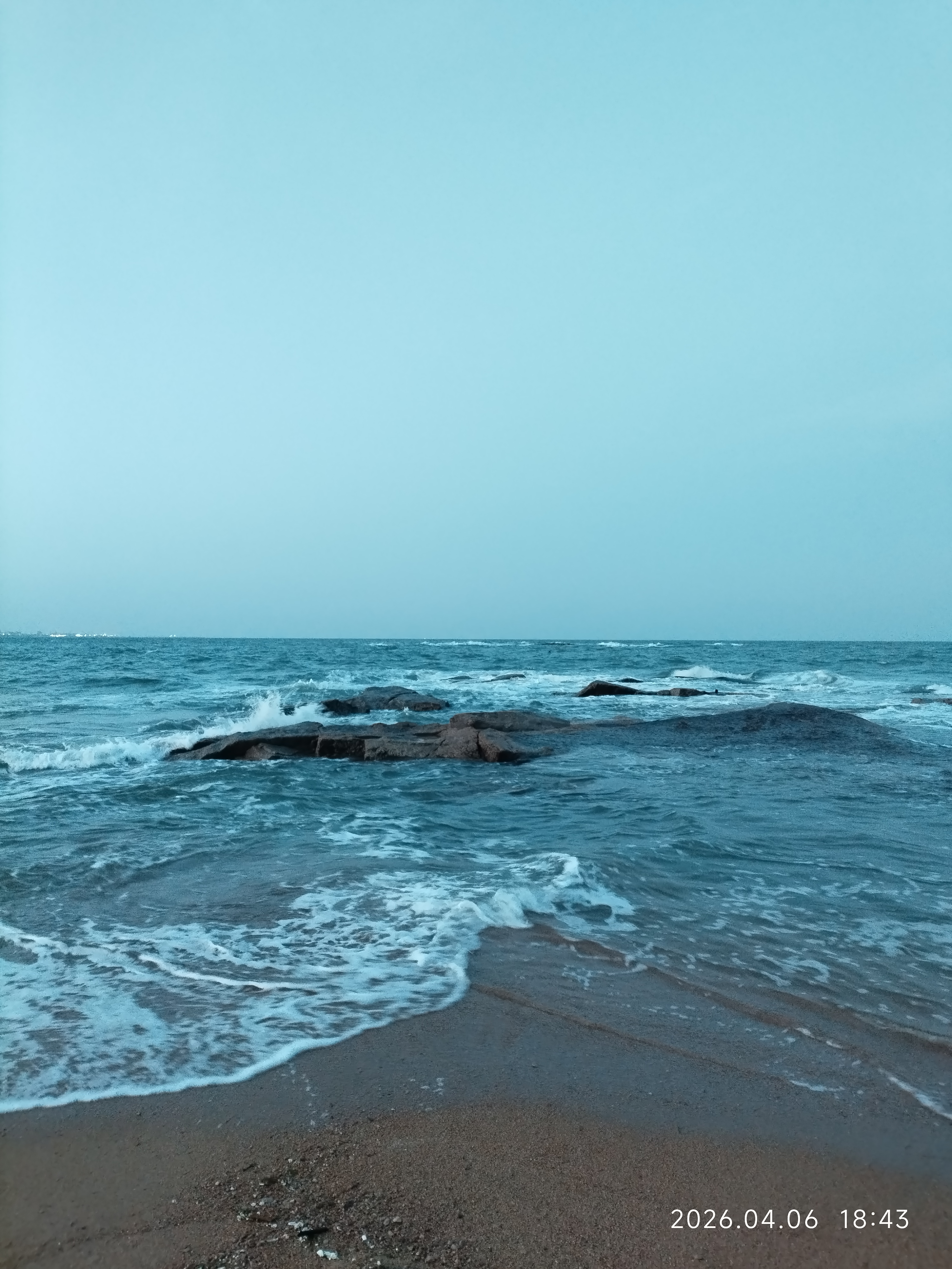 昨天晚上拍的大海,在天没有完全黑下来的时候,也就是这一两分钟短暂的,拍的照片。特别好看,这画面太有冲击力了!