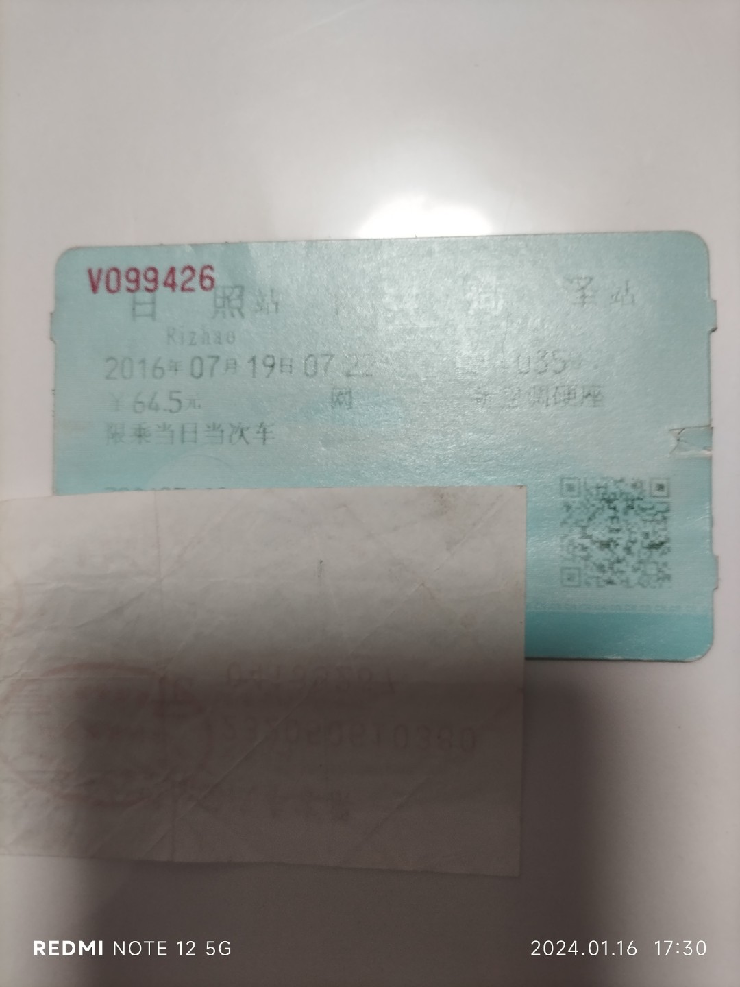 2006年7月19日,日照到菏泽的火车票。硬座64.5元钱。现在纸质火车票没有了,我好怀念纸质火车票。