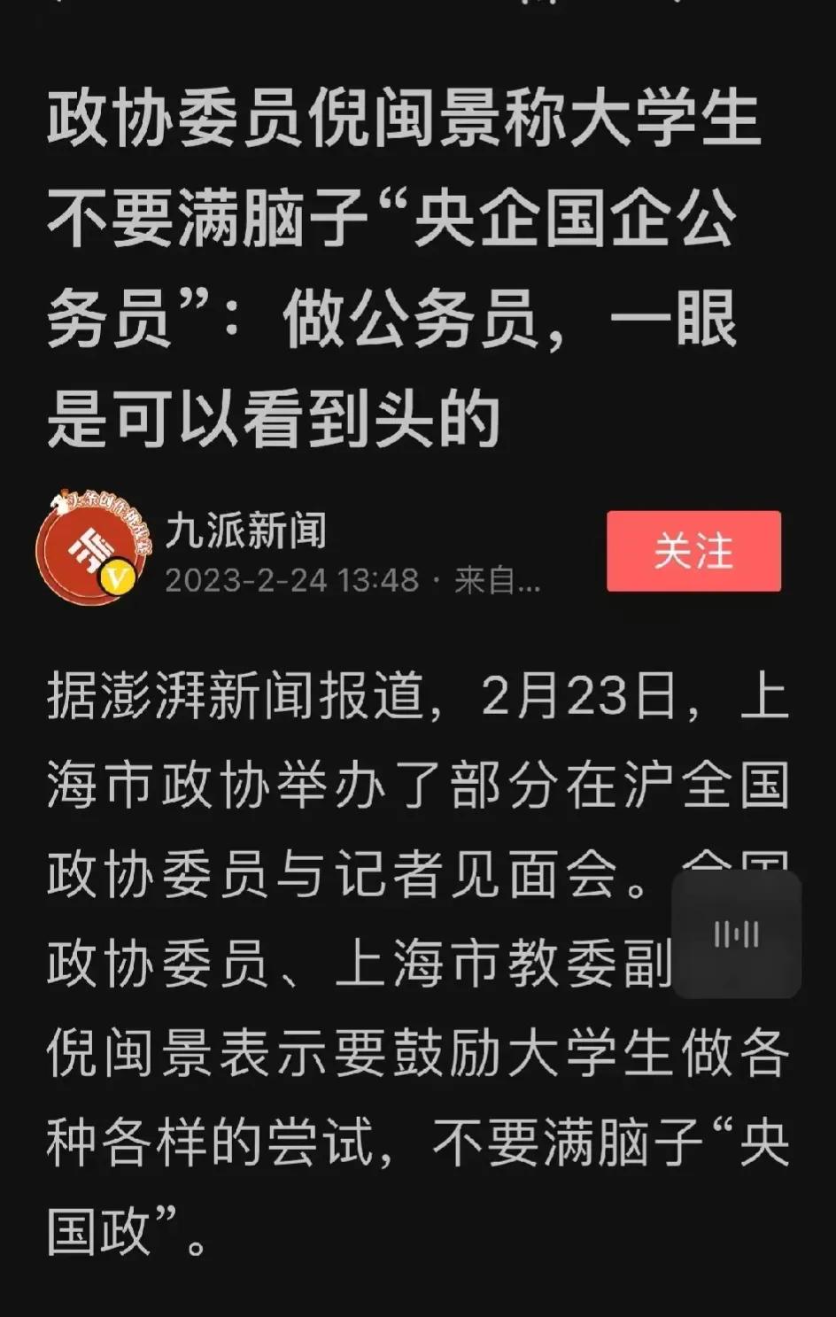 哈哈哈哈!什么叫站着说话不腰疼,这就是!既然你说国企和公务员一眼都看到了头,不如