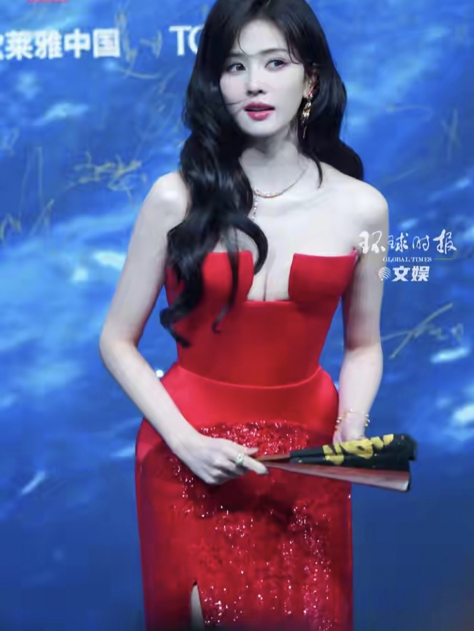 像白鹿,裙子比姚晨的更出位一点,前面低U领,腰部也是高开叉设计,整体有点清凉,曼妙身材也一览无余。