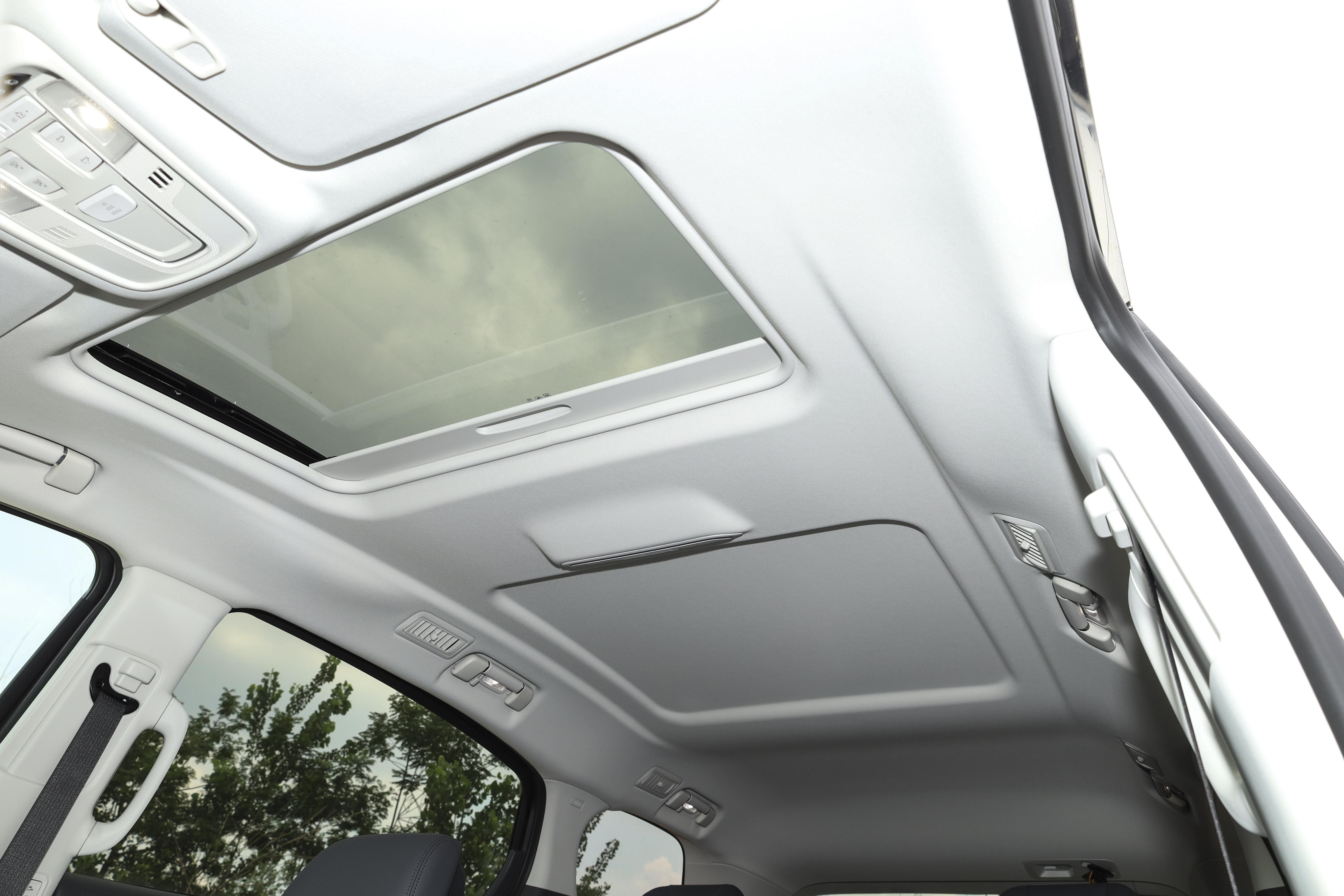 车内还有单天窗,隔热效果特别好,试驾的时候大太阳晒着,车内也不会觉得闷热,采光也通透,一家人坐在车里,视野特别好,露营的时候把座椅放倒,铺上垫子,就能躺着看星星,氛围感直接拉满。