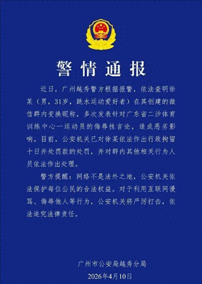 这次警方出手快、处理果断,就是明确态度:侮辱诽谤、网络暴力,一律严查严办。不管你藏在哪个群、换多少个网名,只要违法,迟早要被揪出来承担责任 。