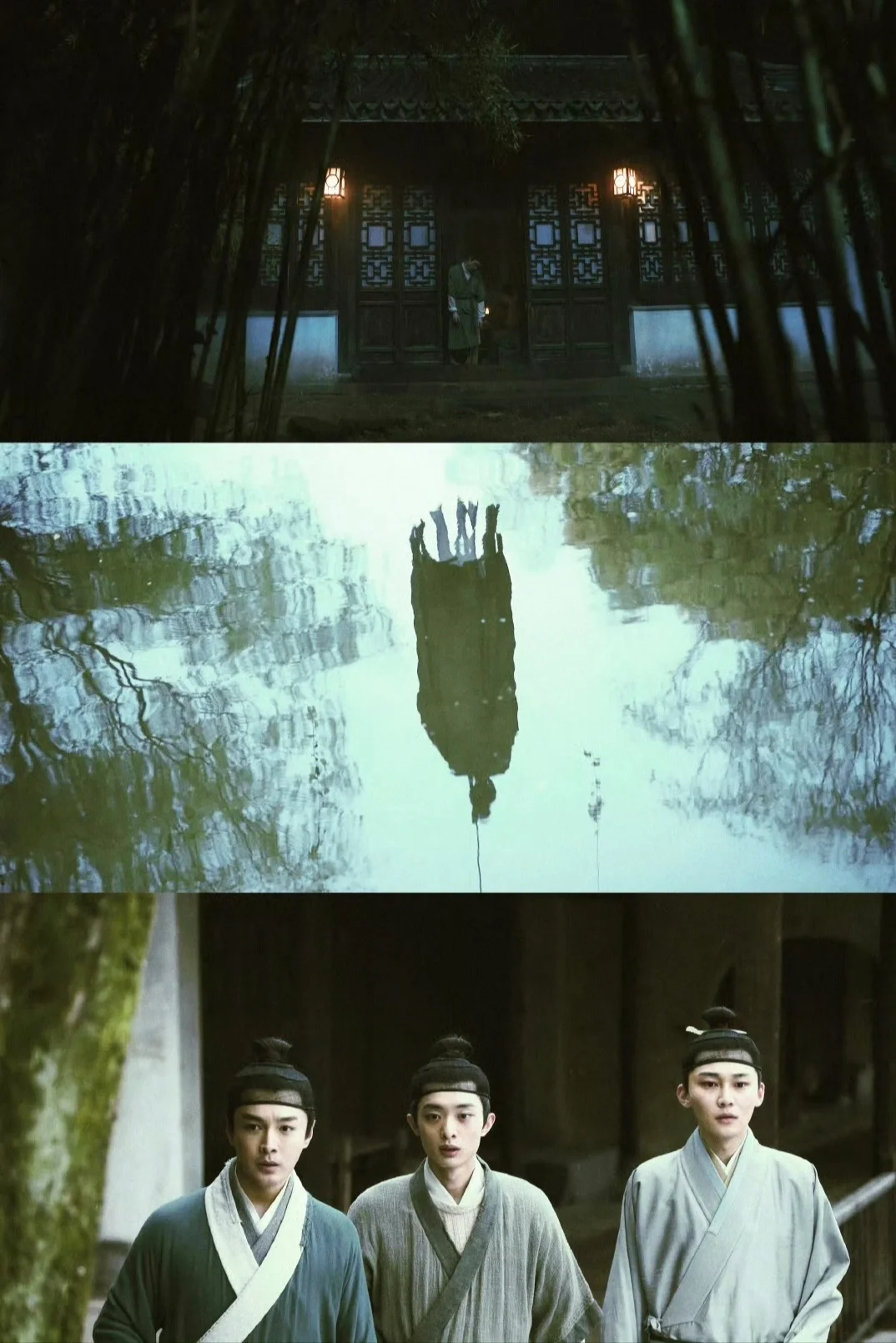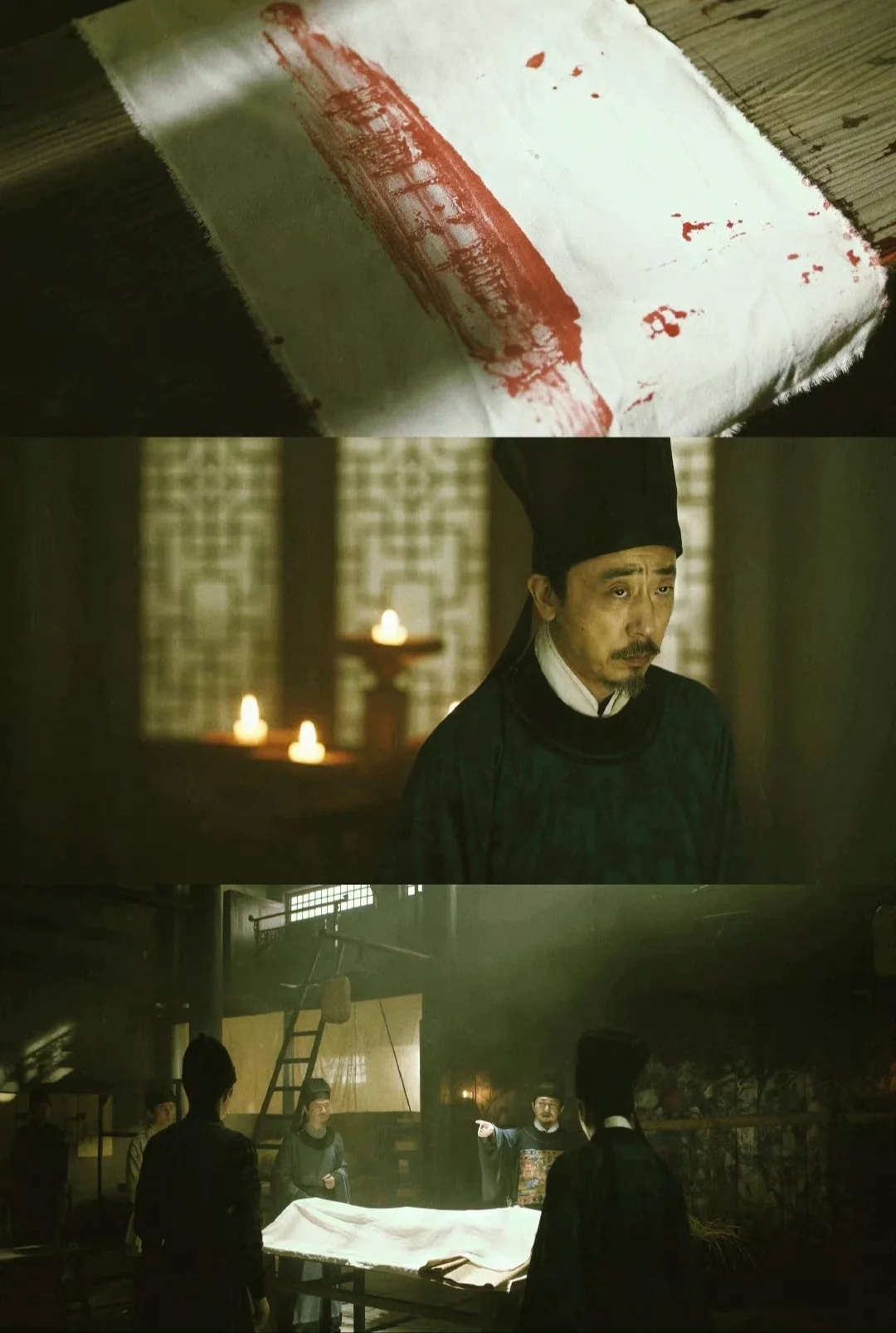 ✅剧中背景以江南水乡取景,流水小桥加错落有秩的府邸,悬疑铺成的推进充满了细节的构造和氛围营造;故事的前两名被害者分别是“维护正义”的捕头和“教书育人”的先生,凶手在现场留下著名的古籍词句,似乎在宣泄着什么不满;