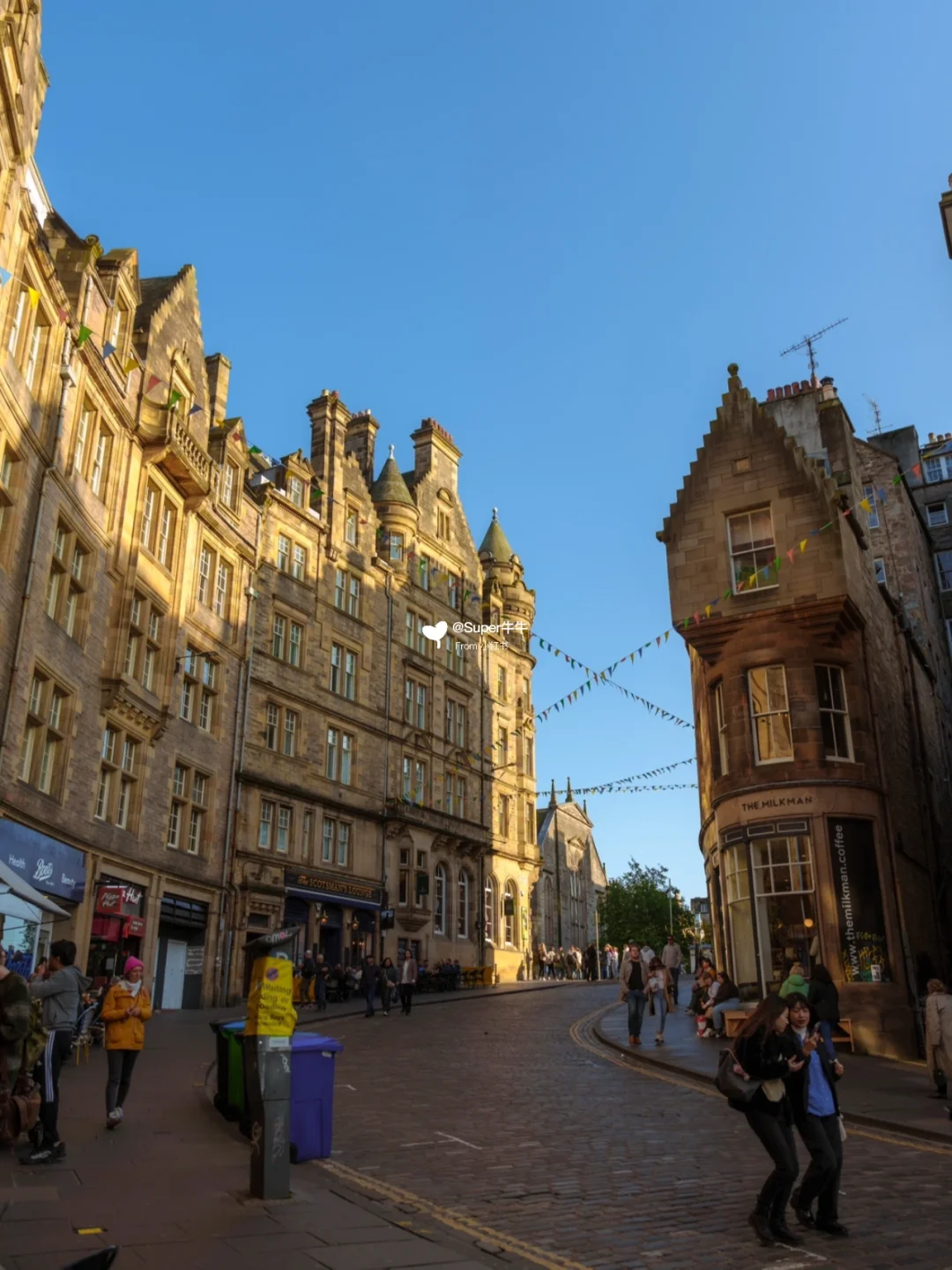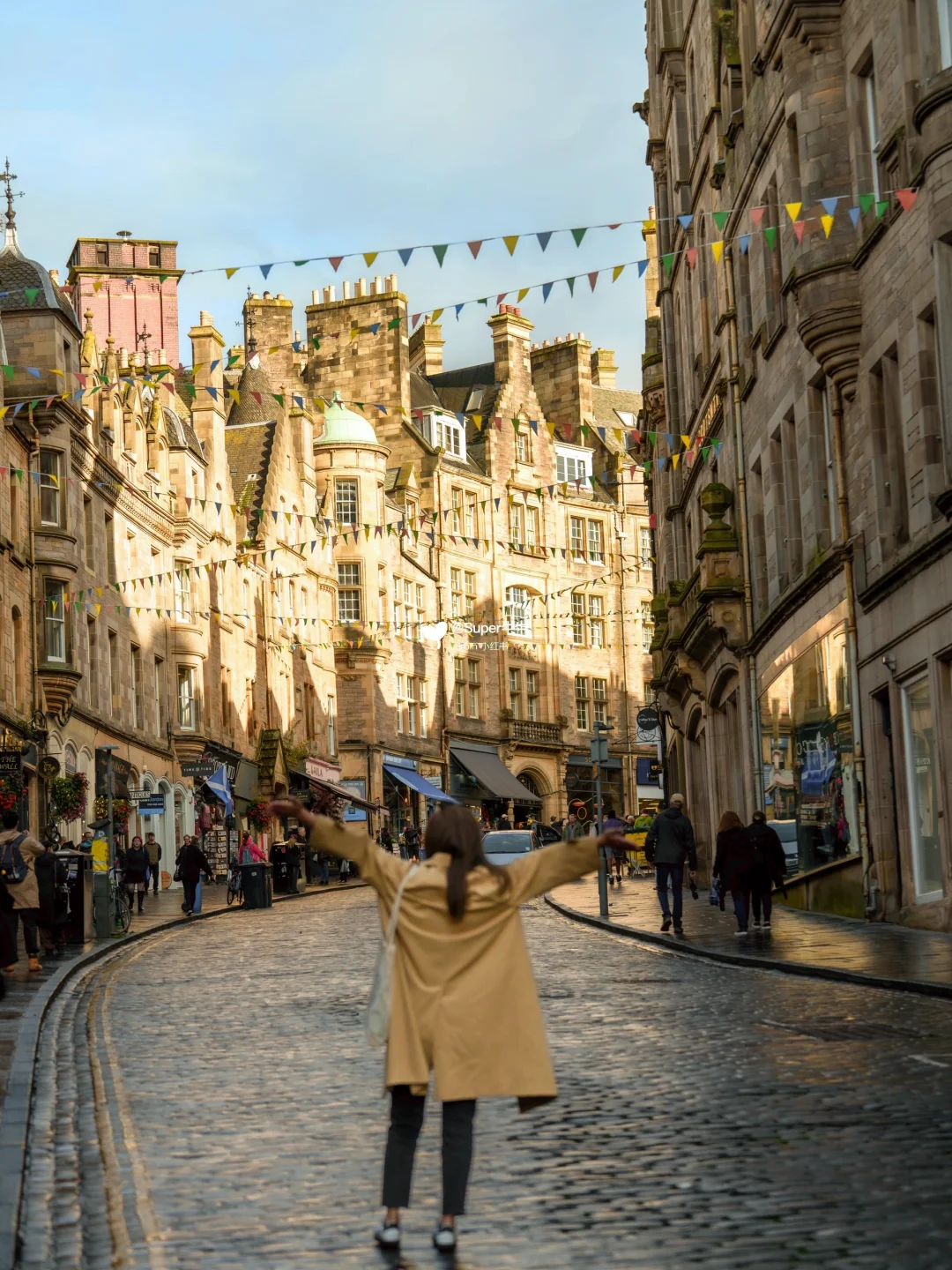 商业街两侧有众多苏格兰伴手礼商店、威士忌酒吧、古老建筑🏘️路上还有街头艺术家吹着苏格兰的风笛🌬️苏格兰羊毛围巾也很有名🧣可以给家人带几条~