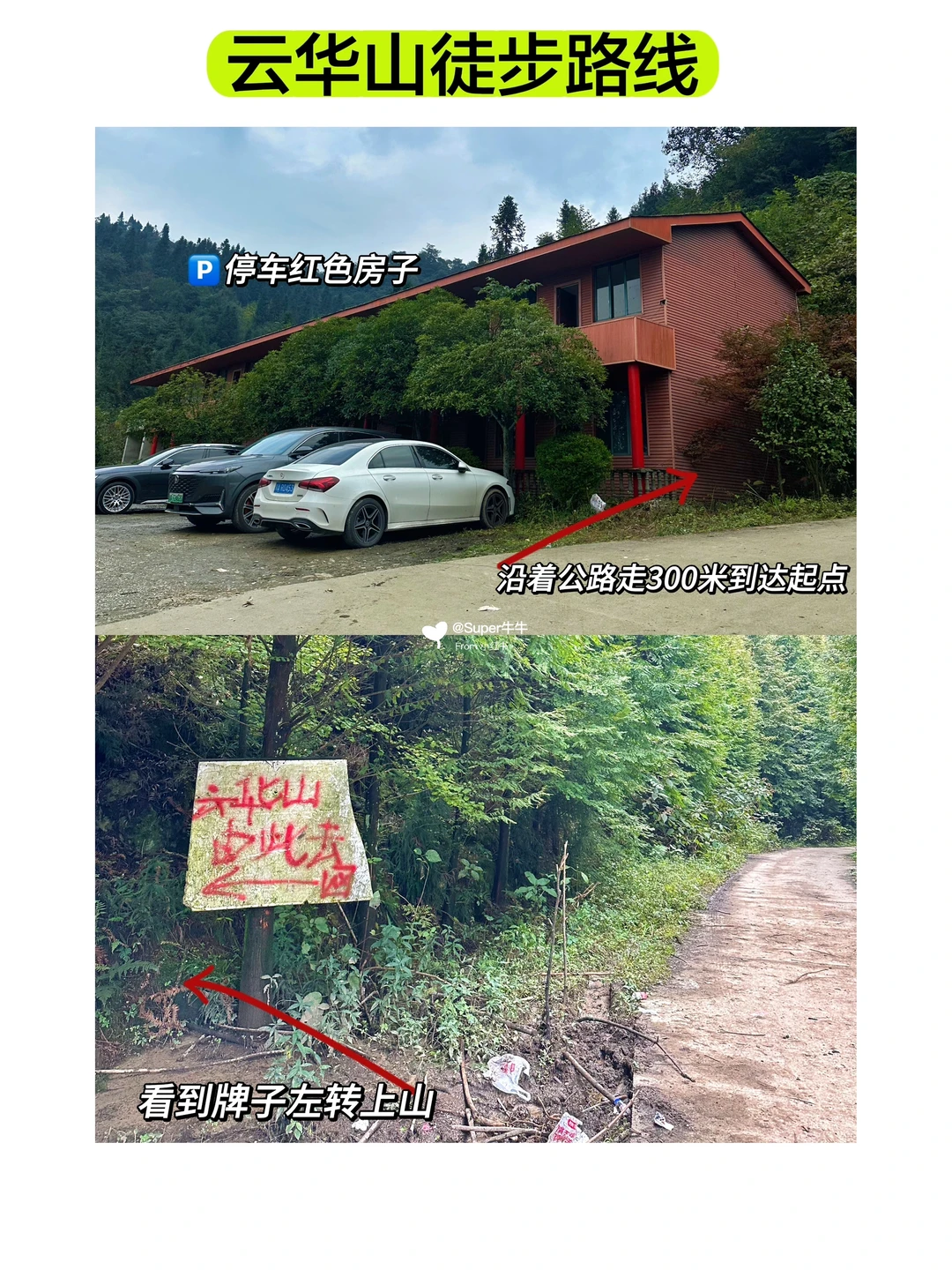 🗺️路线:前行300m 会看到左侧云华山红色指示牌,以此为起点天气好路况好20min登顶!