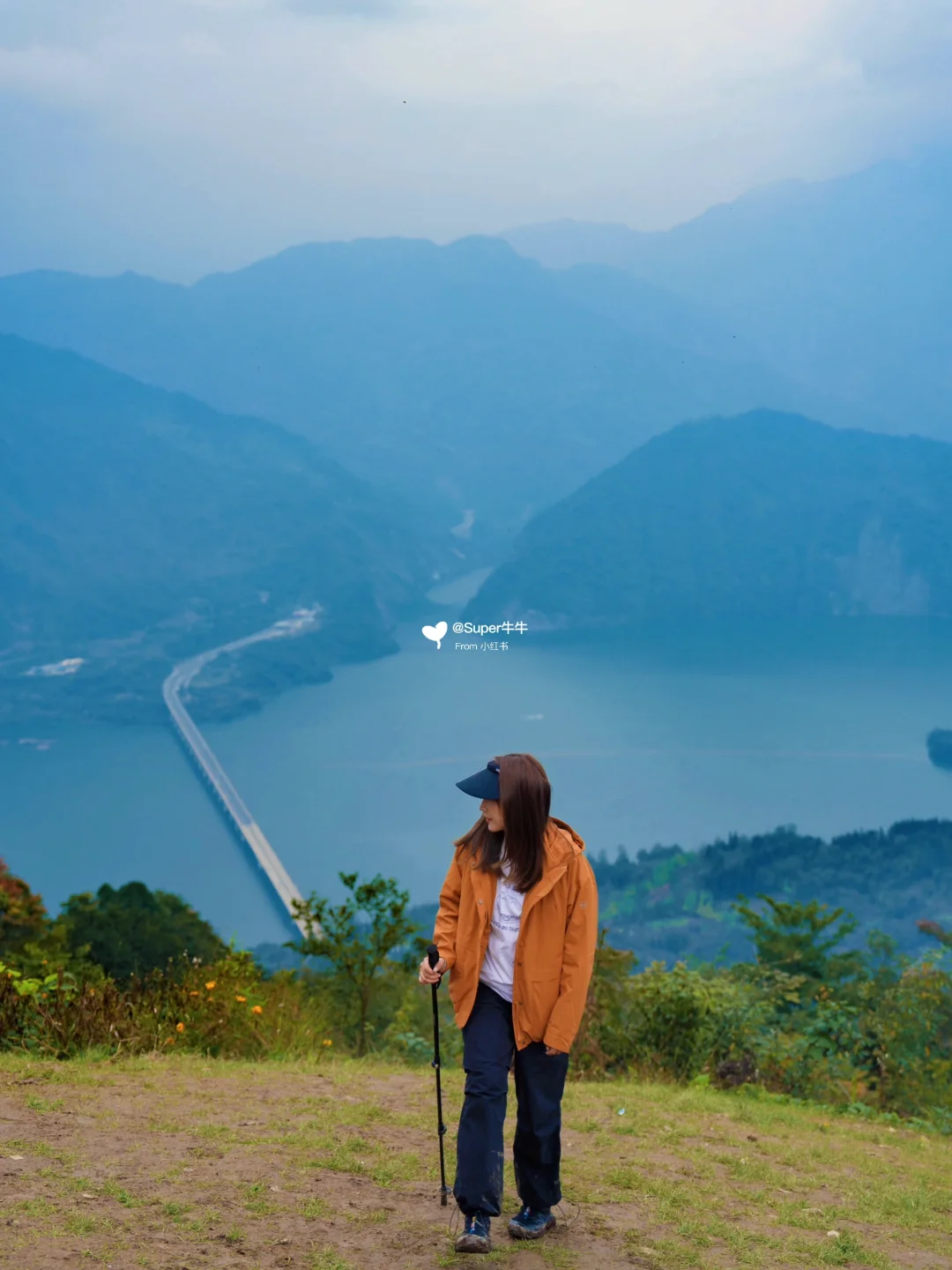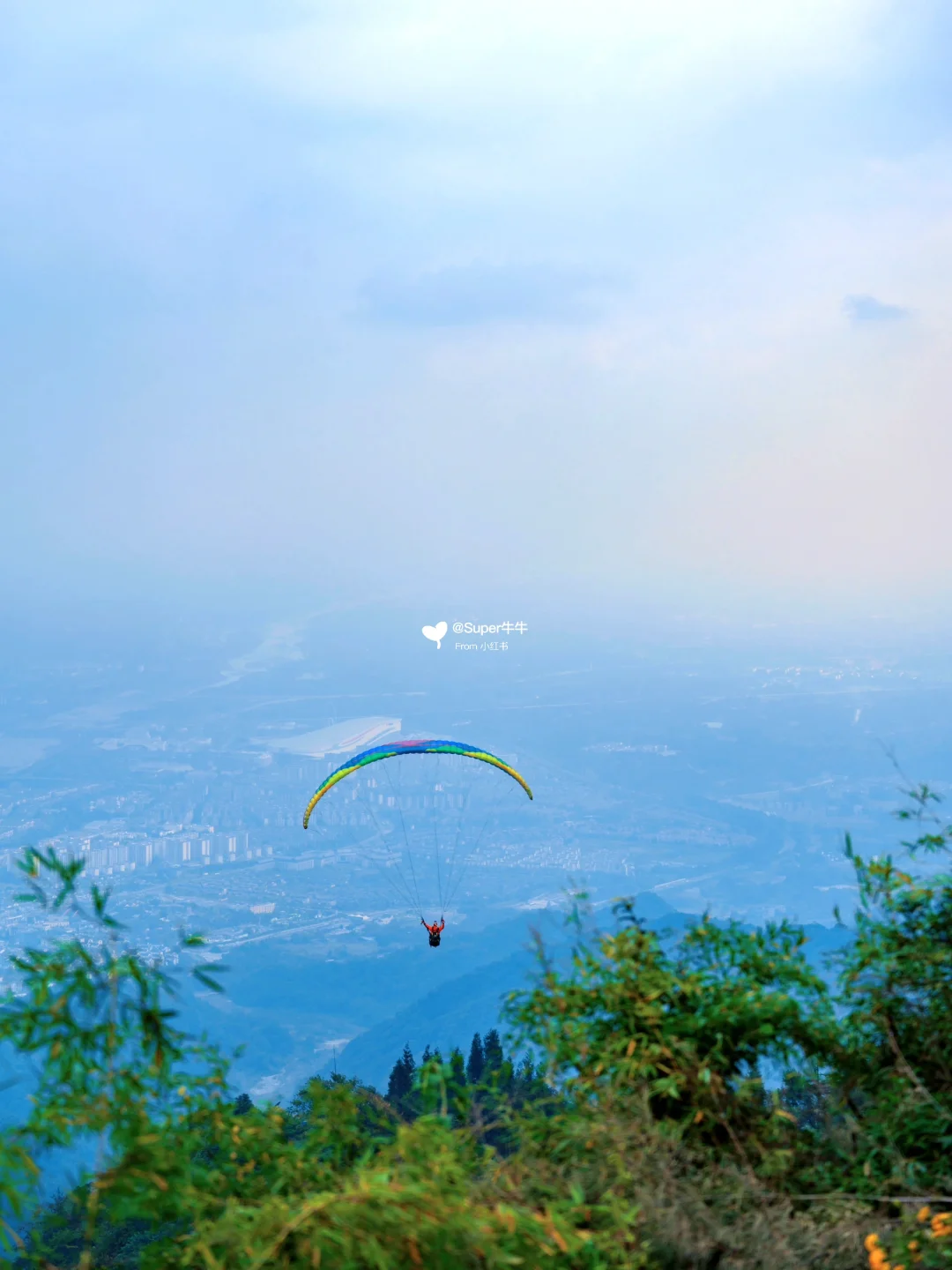 🎢观景点:山顶其实是两处观景点,左侧是徒步终点观紫坪铺水库,右侧是滑翔伞基地看都江堰全景