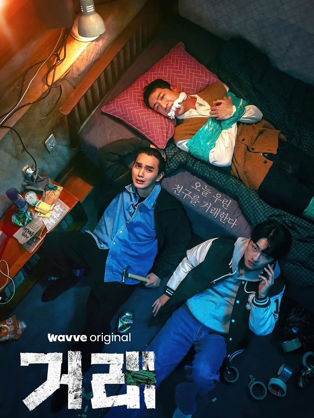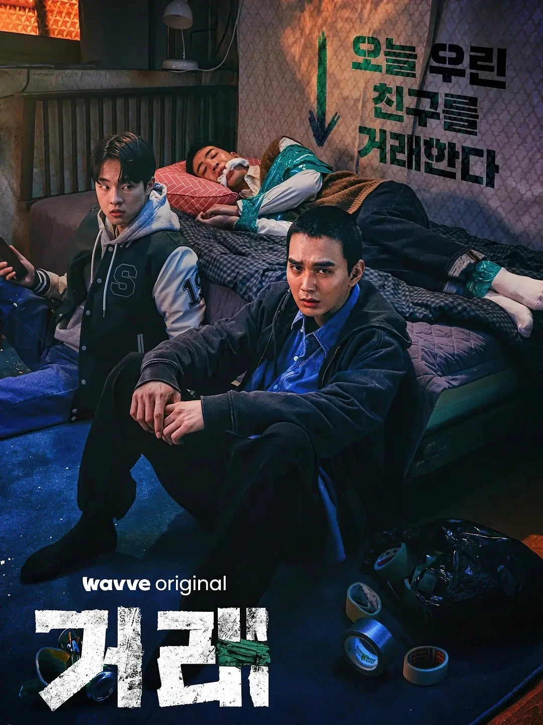 ✅这部剧由漫画改编,主要讲述了三位高中同学—俊成、宰孝和珉宇在久别重逢后,一同陷入了一场莫名其妙的绑架事件。