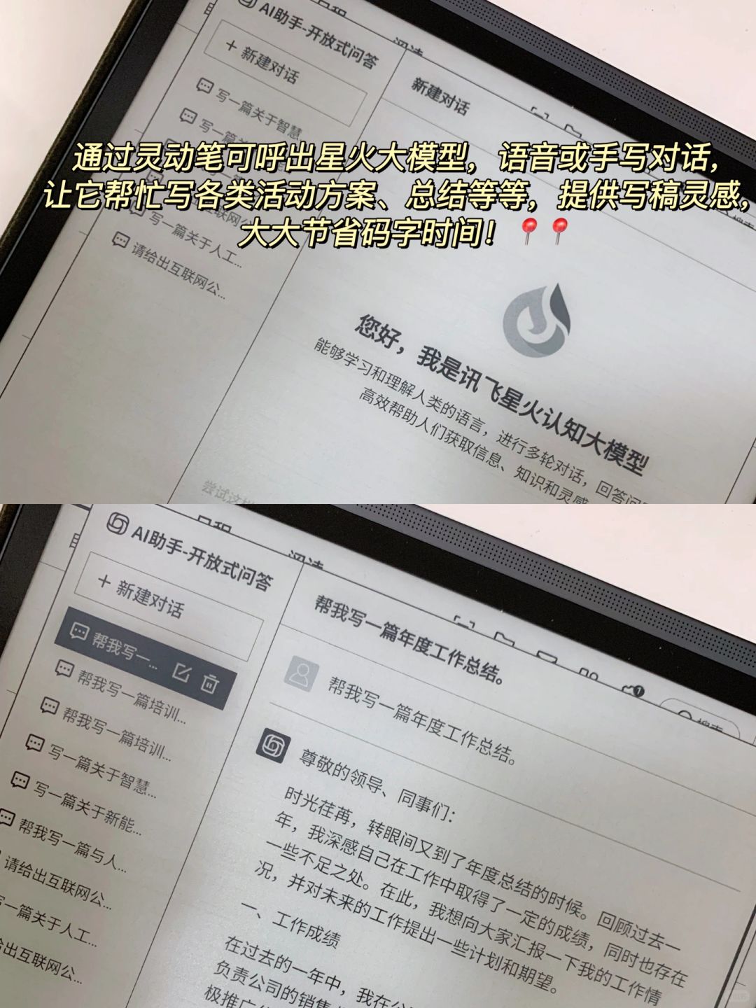 6.把工作干漂亮其实很简单,会写+高效+亮点。会写是一项硬技能,无论如何都要学起来。高效就要善用智能工具,比如上面说的讯飞办公本X3,我一般用它来记日程,待办事项随时写不怕忘。还可呼出星火大模型进行对话,让它帮忙写各类活动方案、总结等等