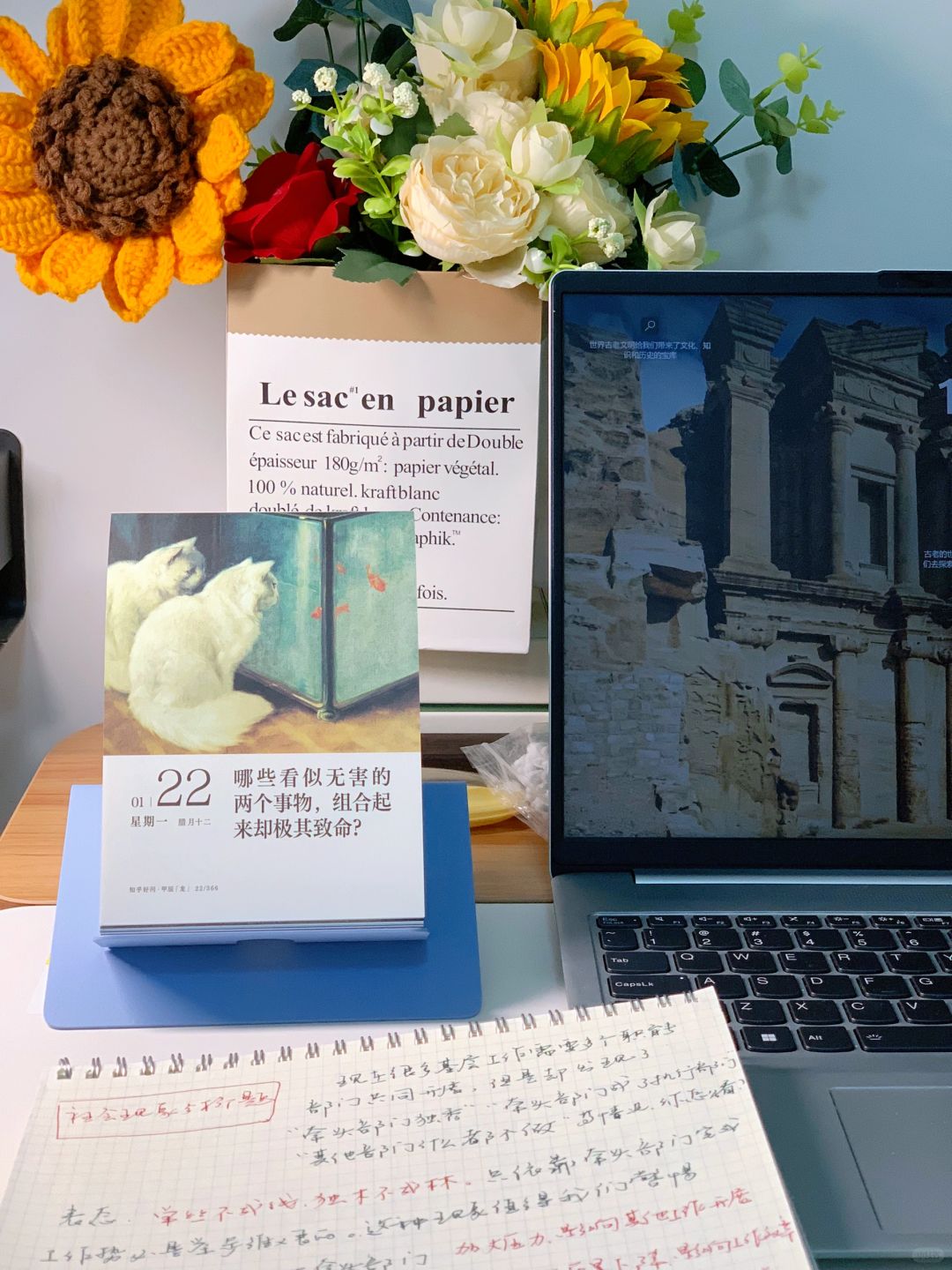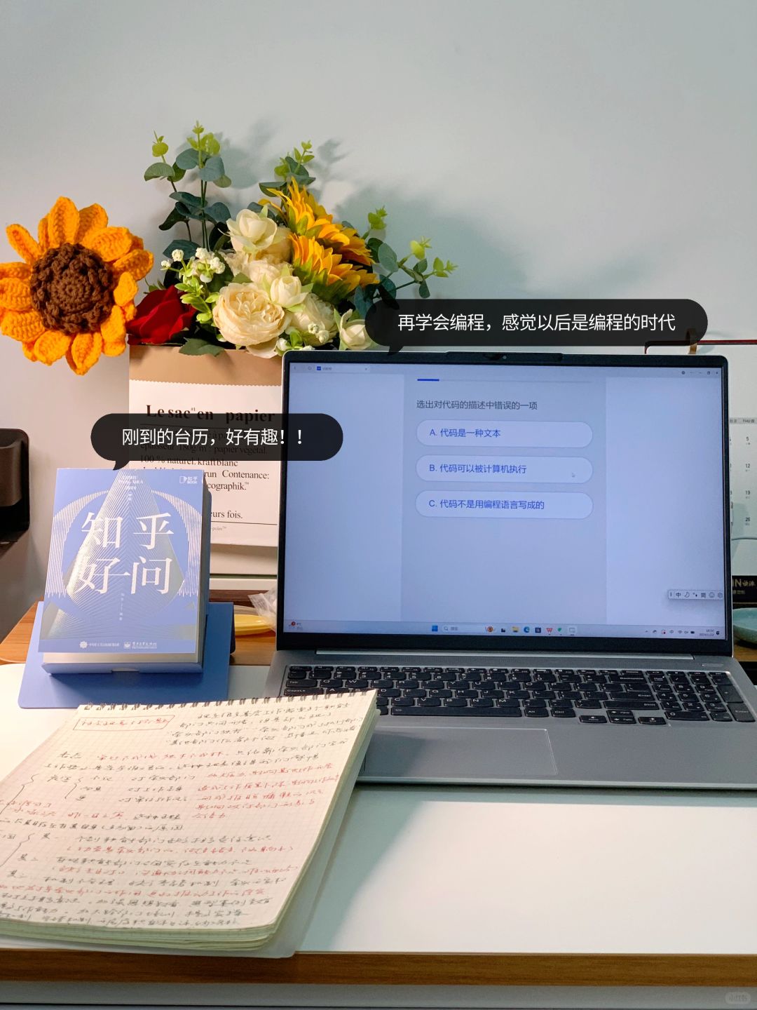 如何理解呢,就是可以借助一些小工具,比如台历、小标签、小笔记本等等,将工作事项登记起来,如果完成的就打勾或者刮掉,就可以知道哪些事项已经完成。同时对于自己培养工作全局思维有帮助。我自己上述方法都用过,今年准备在台历上登记事项,新买的台历也到啦,今年某乎好问台历真的惊艳到我啦(见图7),今年工作的小心思又多了一个