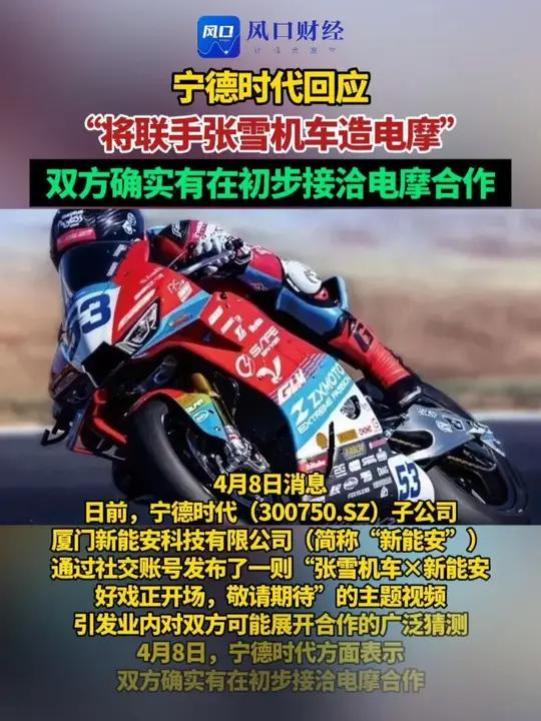 与之相对应的,宁德时代旗下的子公司,厦门新能安科技有限公司通过社交账号发了一则:张雪机车 X 新能安 好戏正开场,敬请期待的主题视频,引发了业内对双方可能展开合作的广泛猜测。在4月8日,宁德时代方面表示,双方确实有在初步洽谈电摩合作的事项,这也进一步印证了,张雪机车将联手宁德时代开始造电摩了。