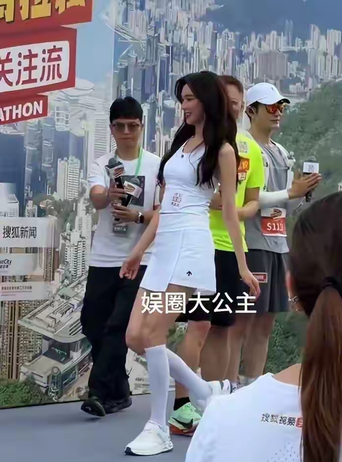 51岁的她,本来一身白色吊带裙配小腿袜,波浪卷发配大耳环,温柔优雅是真的优雅。但问题在于,这是跑步比赛啊!她穿得太过“精致”了,身上挂满了饰品,看上去更像走红毯而不是跑步。有人觉得这就是她的风格,优雅到老;也有人吐槽她偶像包袱太重,根本不是来跑步的,像是来现场“摆拍”的。