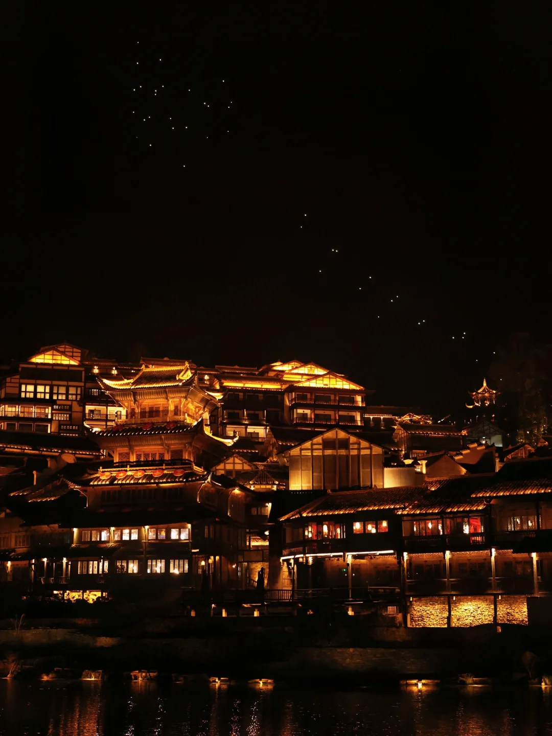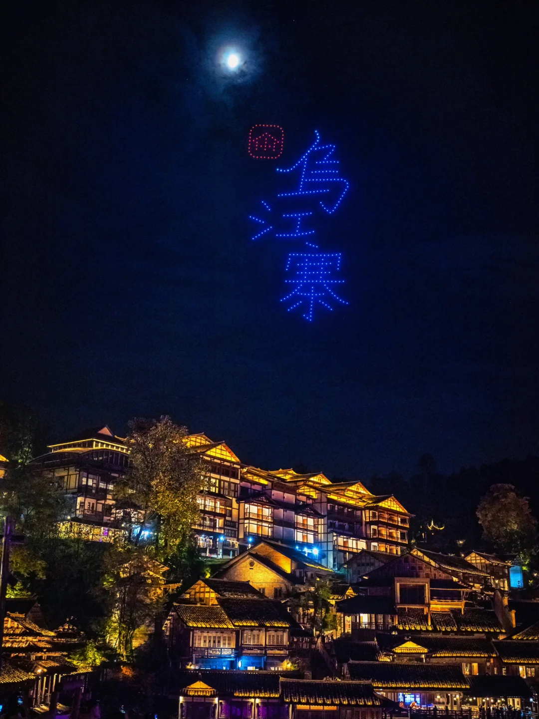 →拦门酒、梦幻飞鱼秀、打铁花→晚餐吊锅宴🍲 (体验特色美食)→夜游乌江寨🌌