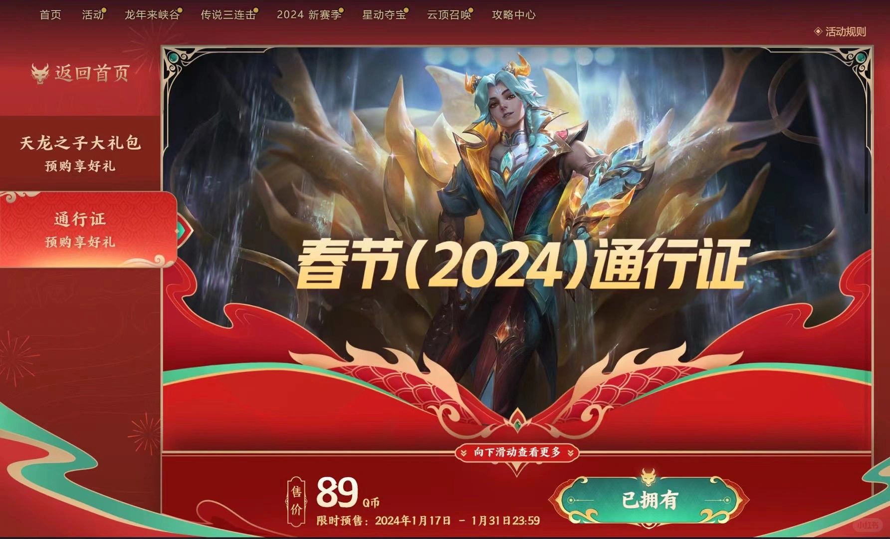 龙年限定全套皮肤以及龙年通行证已拿下!冲!🐉