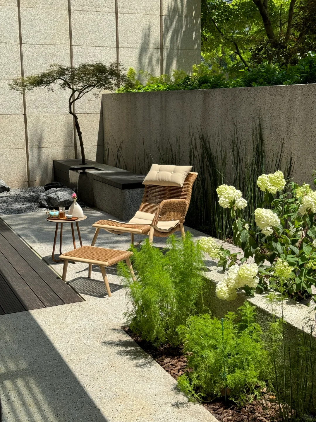 花园的左边是羽毛枫和水景(P[二R]),显得特别宁静与雅致