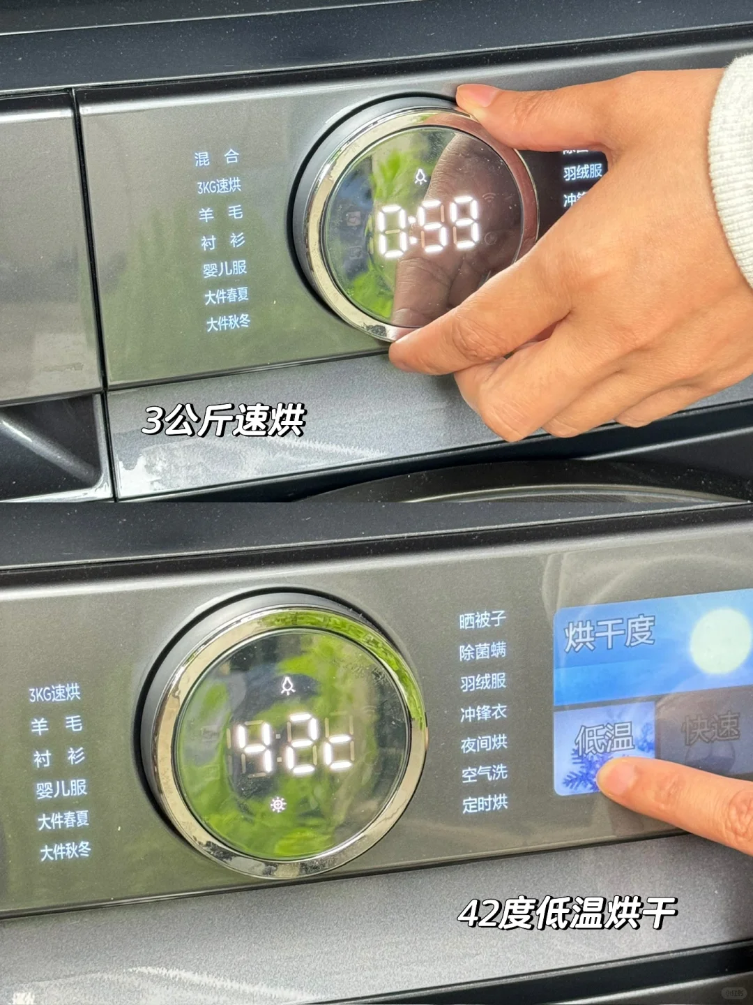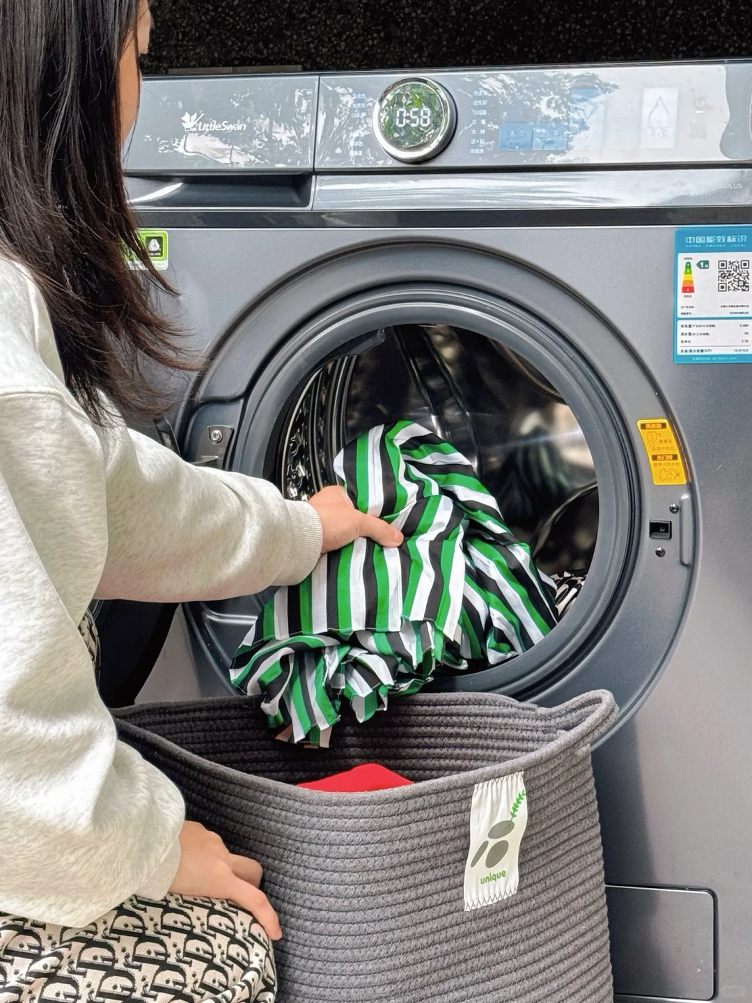 😊烘干机更是我的得力助手。全变频电机,让烘干速度超级快,春天一家三口的衣物👔,不到一小时就能烘干,省时又省心。而且烘出来的衣物柔软蓬松☁️,触感超级好。更重要的是,运行时声音很小,我在花园里喝茶🍵,几乎感觉不到它在工作[哇R]