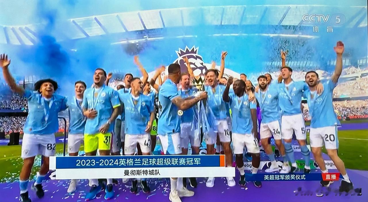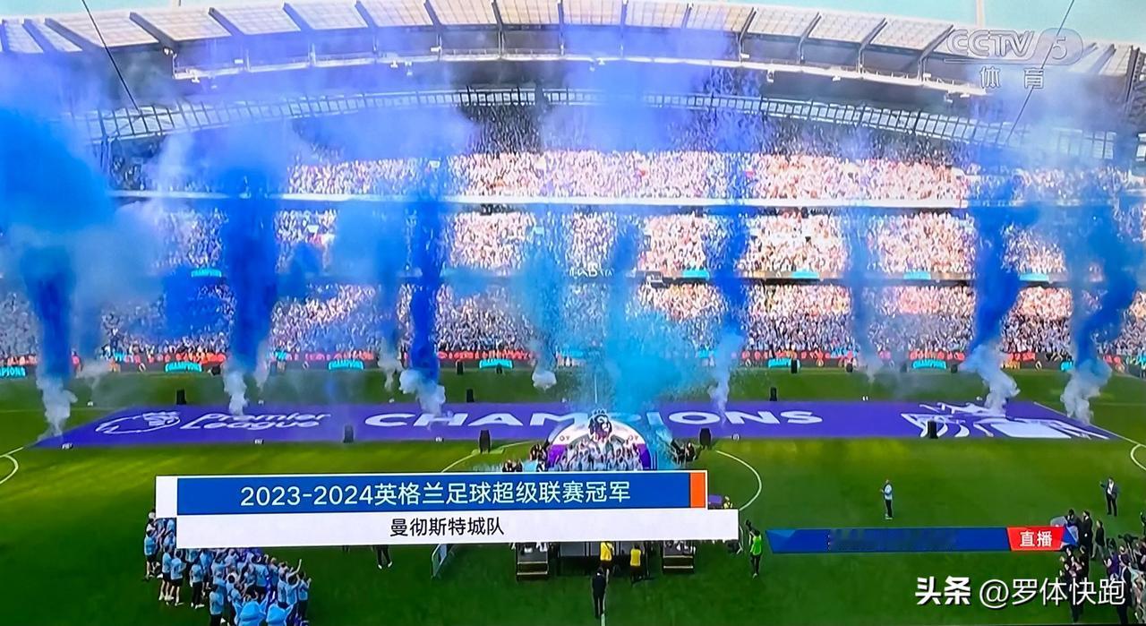 曼城伊蒂哈德球场变成蓝月亮的欢乐海洋,英超最后一轮3-1战胜西汉姆联队后,曼彻斯特城以91分排名英超积分榜第一,这已经是曼城连续第四个赛季收获英超冠军了,本赛季阿森纳又一次遗憾收获第二,下个赛季会有哪支球队站出来? #英超曼城#