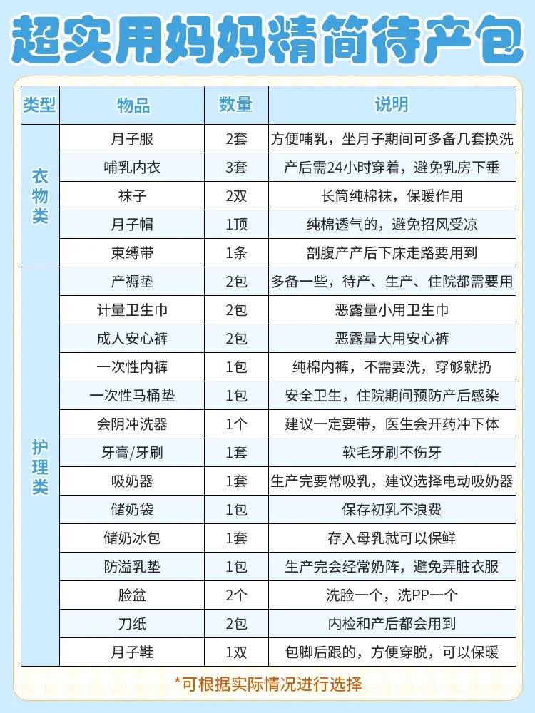 准备一个全面又实用的待产包可是个大事件!这是咱娃感受老妈子一腔柔情母爱的第一步!