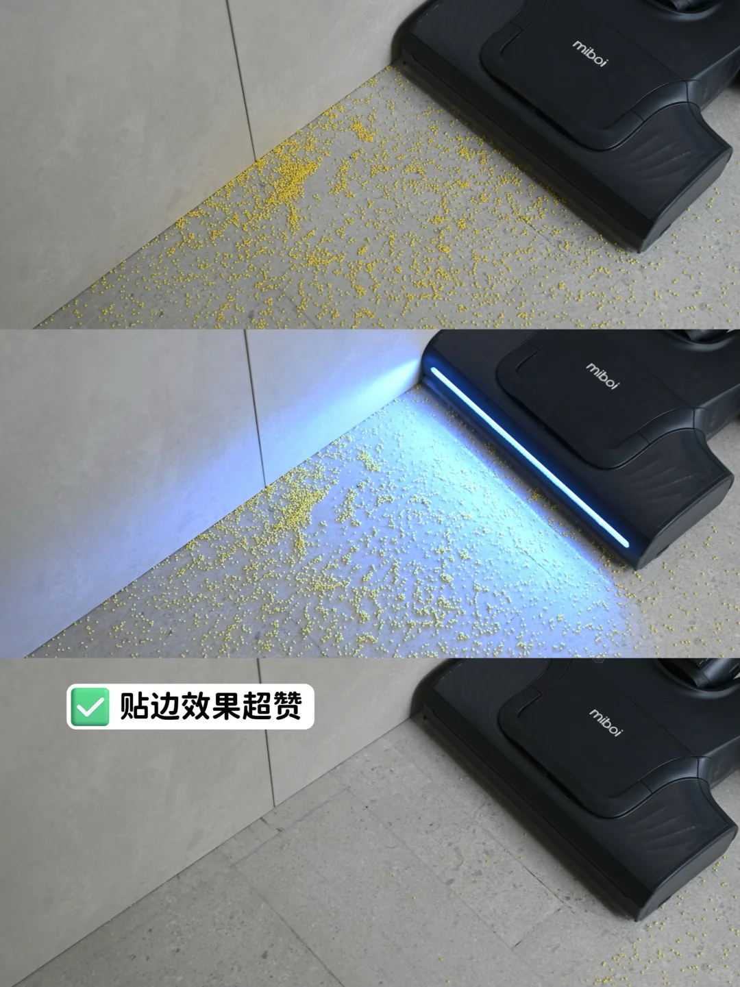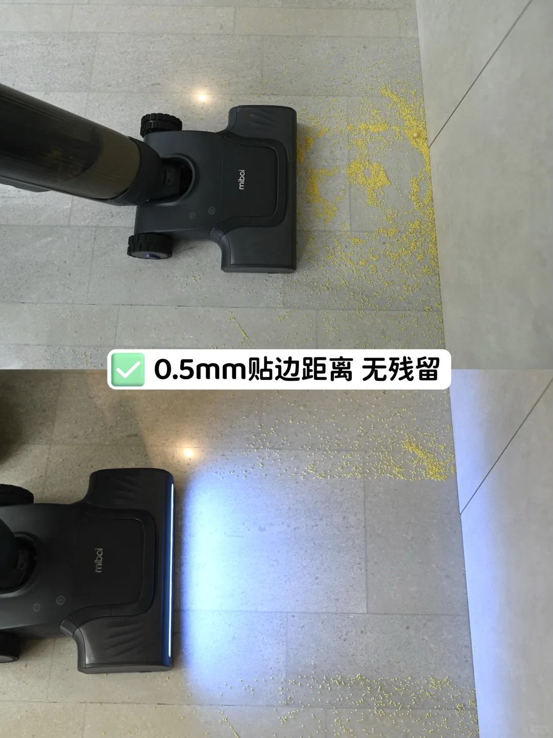 作为家居博主,今年端午节非常荣幸受邀参加了米博无布洗地机8系新品品鉴会,活动上不仅认识了美女朋友,参加了有趣的手工活动,还深度体验了米博无布洗地机V8,真是收获满满,不虚此行! 和其他家居博主聊天发现,我们都用过很多洗地机,但是目前没有一款令人满意的。市面上的传统洗地机基本上都是那种带滚布的,说实话,虽然有的能做到滚布自清洁和烘干,但是它的工作原理是把滚布打湿,然后滚布旋转开始拖地,那么,如果拖完厨房,继续去卧室拖地,滚布上沾的脏污就很容易带到卧室。而且滚布用一段时间就很容易脏的洗不出来了。更别提如果自清洁能力不够,烘干能力不够,那第二次使用时,滚布发臭这个问题我想有洗地机的朋友肯定都遇到过! 方太集团旗下的米博无布洗地机,经过多年研发迭代了上百产品才有我们今天看到的8系新品,真的要给米博点赞。 经过现场工作人员大屏幕近距离测试,以及我们亲自测试(使用日常常见脏污测试:牛奶,酱油,头发,小米等),结论如下: 1,米博无布洗地机,顾名思义就是没有滚刷拖布,靠的是4个硅胶地刷旋转进行清洁,它有两大技术: 一:无布水气旋技术——源自超强破坏力的龙卷风 二:弹力增压地刷——源自汽车避震技术 4个硅胶地刷头,使用寿命约2年,而且终身免费更换,作为洗地机的主要耗材,解决了后顾之忧! 刚开始我也会持怀疑态度,这硅胶地刷能把地擦干净???了解了它的工作原理后,是我孤陋寡闻了! 洗地机清洁时先把清水喷到地上,对脏污进行软化,通过地刷旋转将脏污刮干净,然后反转把脏污甩出的同时通过大吸力吸进污水桶,如果遇到烦人的头发,地刷下压旋转把头发卷起来,然后再轻微抬起,头发就嗖的被吸到污水桶里,根本不会缠头发! 贴边效果也是非常赞,它的边角清洁臂可以升降,贴边距离是0.5mm,用小米撒了一地,清洁完一粒米都没残留,绝绝子! 而且洗地机的清洁头也没有卫生死角,不会藏污纳垢,对强迫症太友好了! 我还能想到的一些细节: 1,前后推拉不费力 2,机器自重不重,而且后面还有2个轮子,不用手拎着走了 3,没有布滚刷,自清洁又快又干净,也不会发臭了 作为博主我体验过很多洗地机,米博很好的解决了传统洗地机易缠绕头发、易发臭的痛点,而且又是方太集团旗下的品牌,在售后和产品品质方面也很让人安心。作为方太的8年忠实老用户,这次又被米博种草了。 大家还有什么想了解的,欢迎评论区留言~