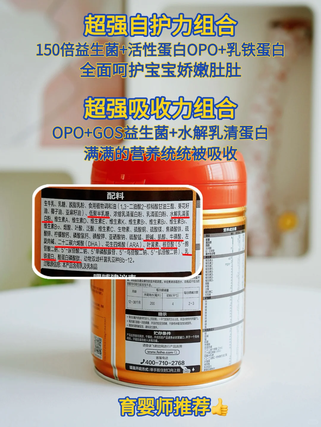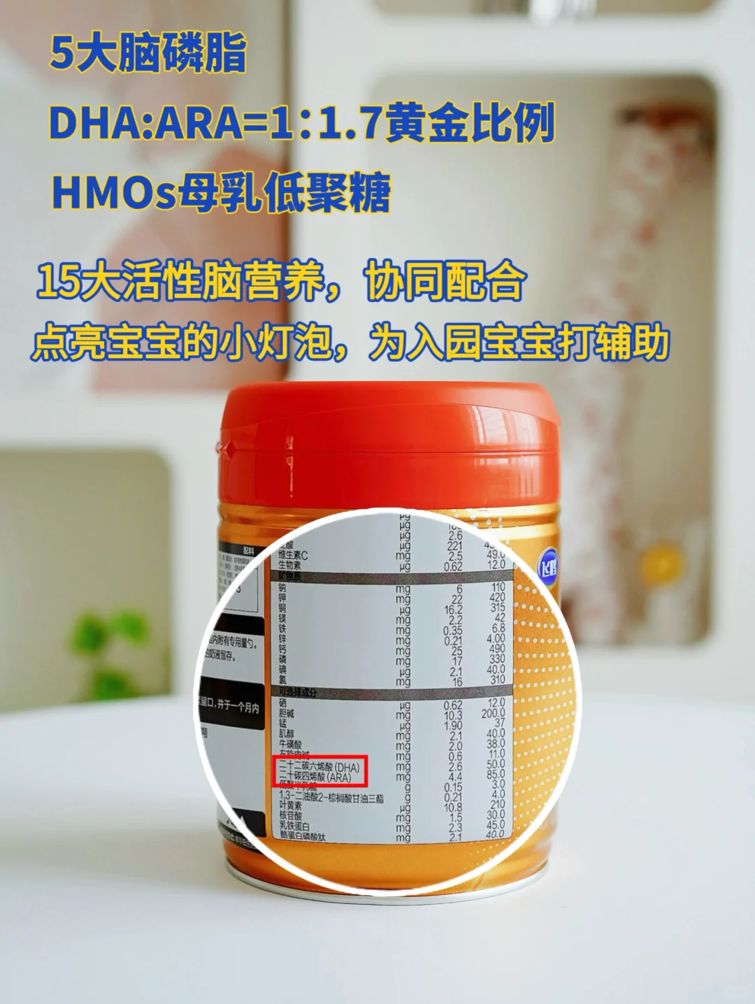 脑力营养也不差:0-3岁可是宝宝大脑发育的黄金期,宝宝大脑80%的脑神经环路都在此阶段形成。不想孩子输在起跑线上,脑营养一定要补充到位。含有15大活性脑营养,特别是5大脑磷脂,可谓是新一代“脑黄金”同时关键成分 DHA和 ARA,按照乳源黄金比例1:1.7添加,还有6种HMOs母乳低聚糖的加持,更贴合宝宝营养所需!要知道飞鹤可携手北大医学部、哈佛BCH,全面启动脑发育战略,专业度一整个拉满。