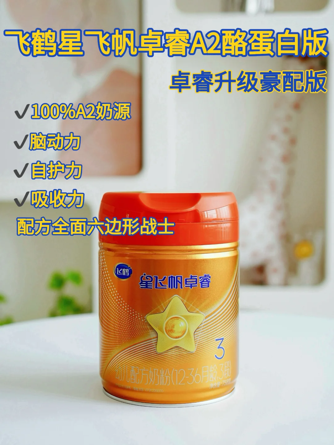 我家大宝喝的是飞鹤星飞帆卓睿A2酪蛋白版奶粉,含有43种营养物质,涵盖了吸收力、自护力、脑营养等,满足0-3岁婴儿身体发育所需营养。
