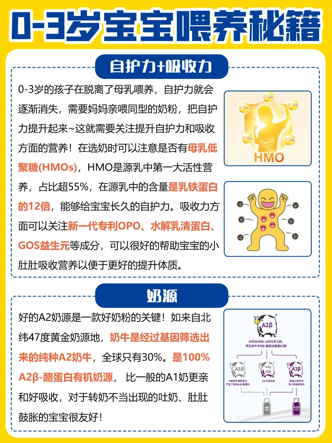 孩子肠胃娇嫩可不是什么奶都行,这款奶源来自北纬47度黄金奶源地,奶牛是经过基因筛选出来的纯种A2奶牛,全球只有30%富含100%A2β-酪蛋白是妈妈亲喂同型蛋白,比一般的A1奶更亲和好吸收。对新生儿来说很友好,能更好吸收和适应奶粉。还是经过三重(奶牛、牛奶、奶粉)检测,一次成粉工艺加工而成,而且从产奶到我们的手上只需要28天,真正的新鲜直达,宝宝喝了也不容易上火