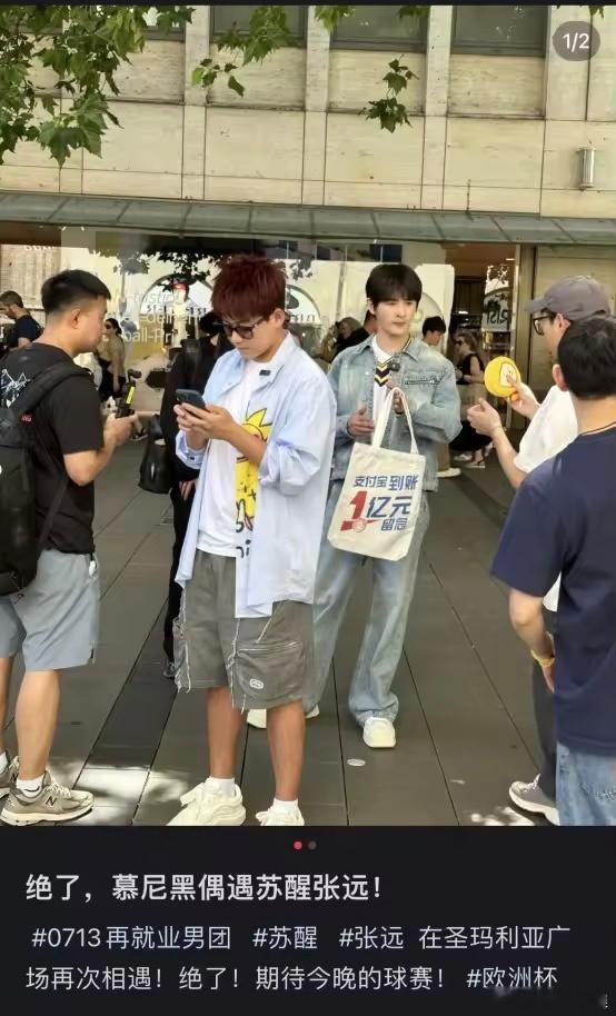 #网友偶遇苏醒张远欧洲杯录综艺#真的很喜欢苏醒张远,两个人这待遇也太好了,不仅录了节目,还能看球赛,这幸福感谁懂,偶遇到他们的人怎么就不是我呢。