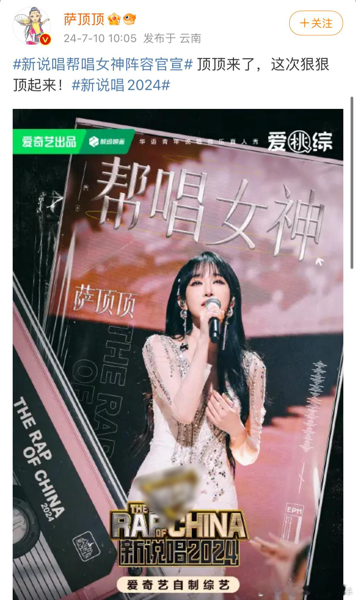 #新说唱帮唱女神阵容官宣#耳朵要被宠幸啦!这回可真是大招连发啊!!艾怡良、希林娜依高、黄绮珊、李嘉格、李斯丹妮、萨顶顶,六大女神集结助阵,实力与颜值的双重暴击!#新说唱2024#