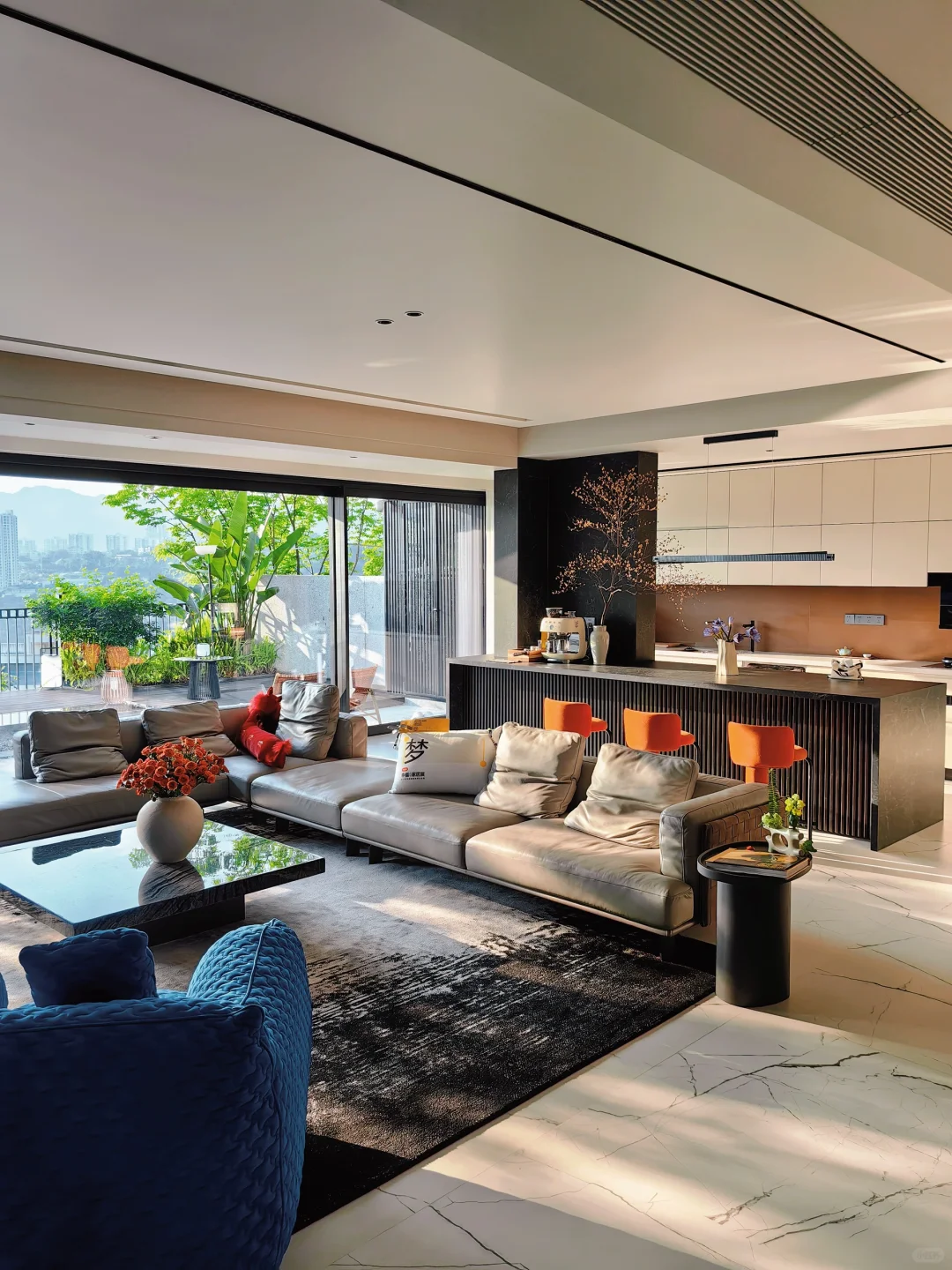 一楼也能玩转轻奢风,开放厨房+奢石纹理,高级感不是吹的,改观了我对一楼的所有认知