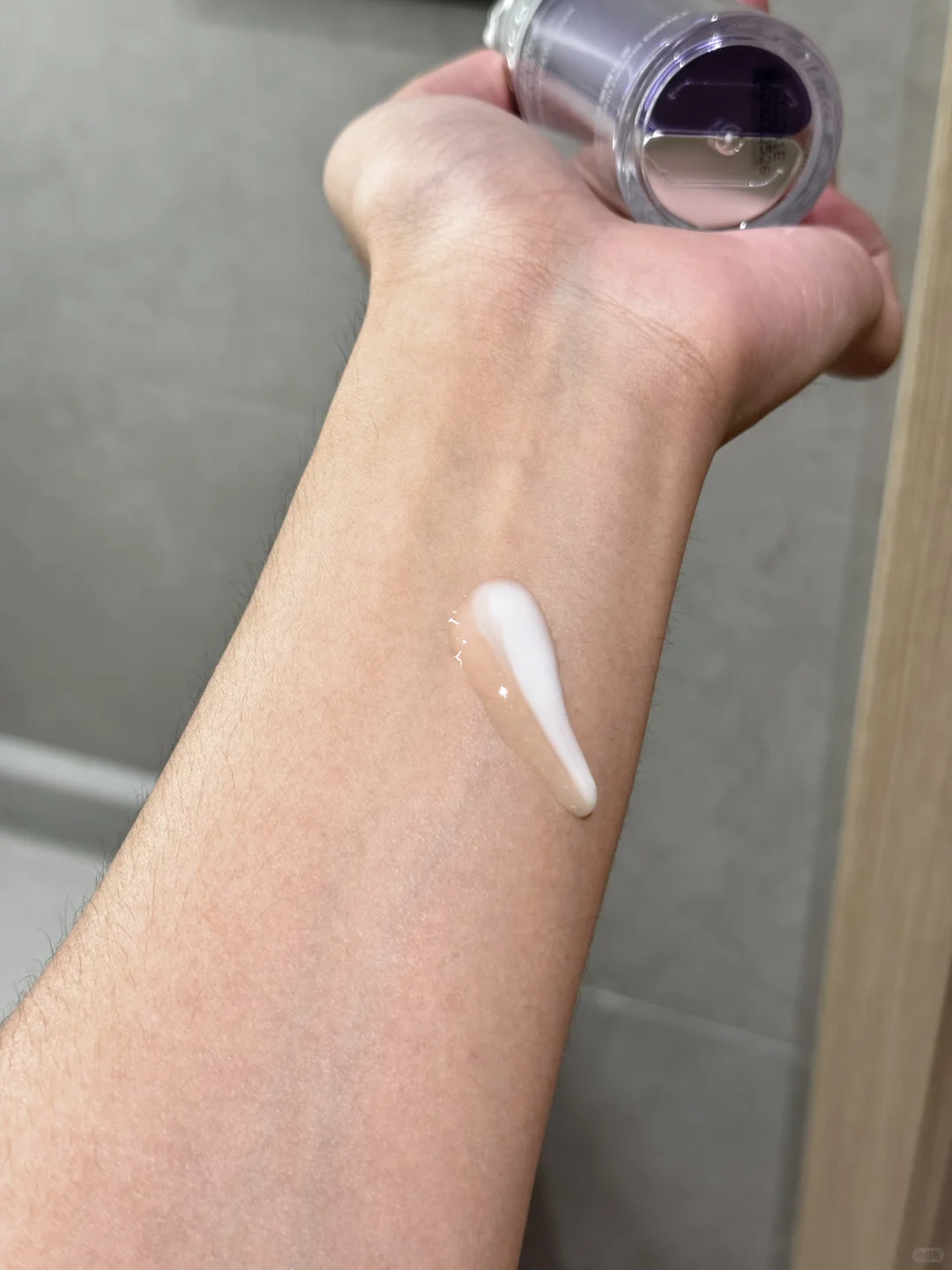 双重微乳的质地,上脸抹开很水润好吸收,特别是在空调房里待久了脸蛋儿干燥、发红不稳定的时候去用,皮肤状态肉眼可见的变得柔润饱满很多!!