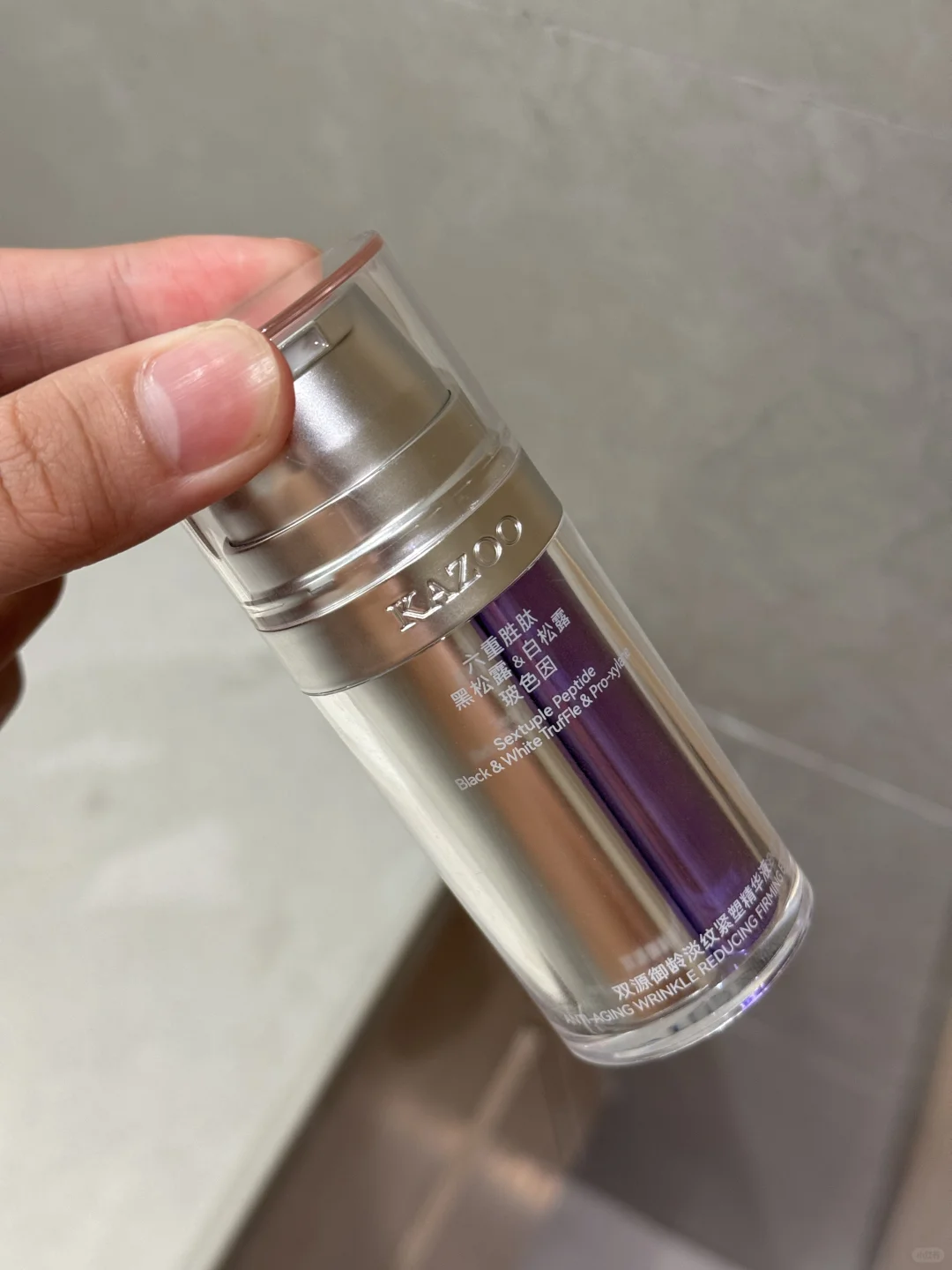 它主打的内外抗老双管齐下,一瓶纯多用那种 铂金管+紫金管内的20.1%六重胜肽溶液、黑白松露和高浓玻色因不仅能提亮、均匀肤色,还能针对脸上的一些细纹进行熨斗一样给你整没了🥲