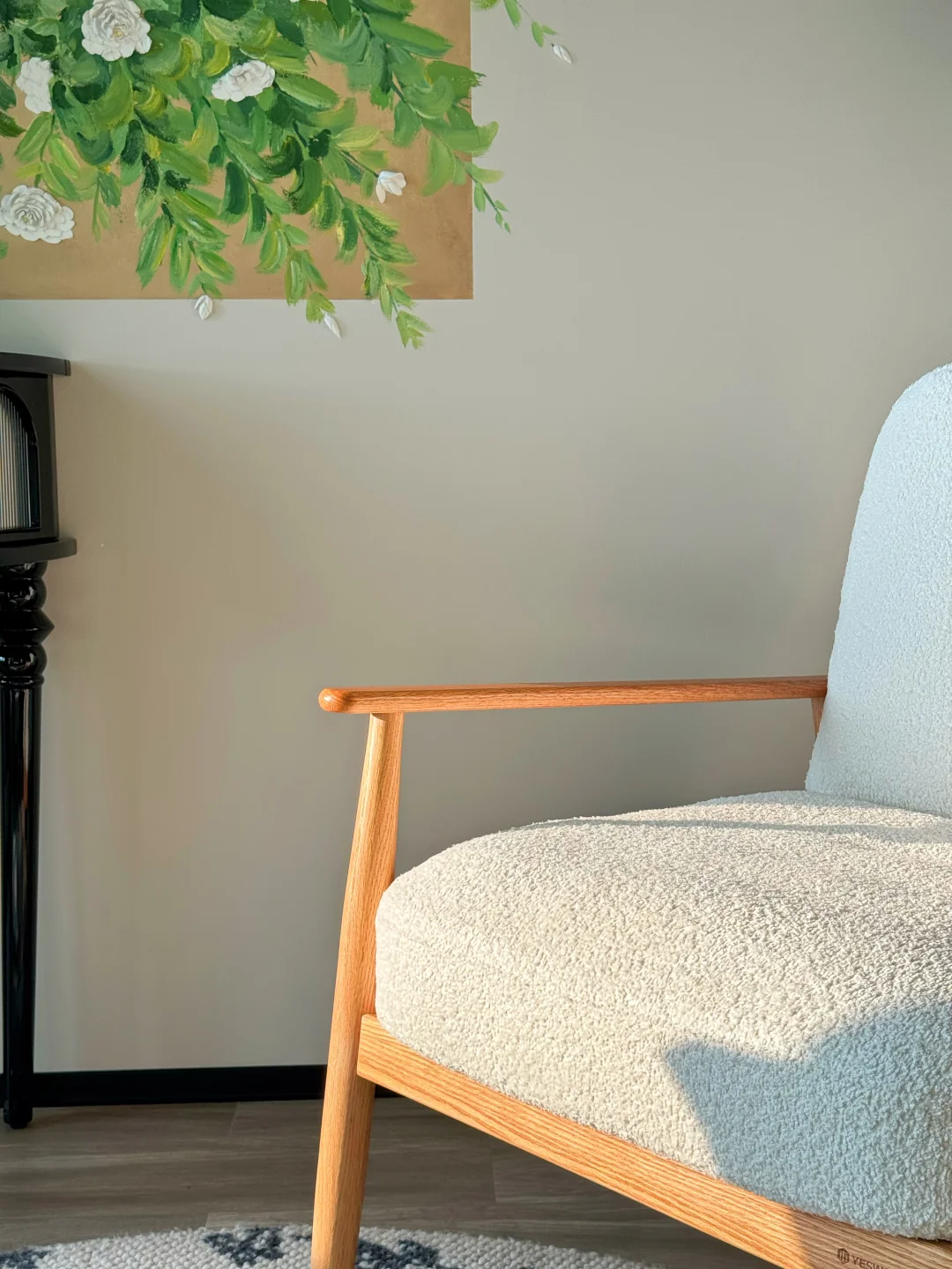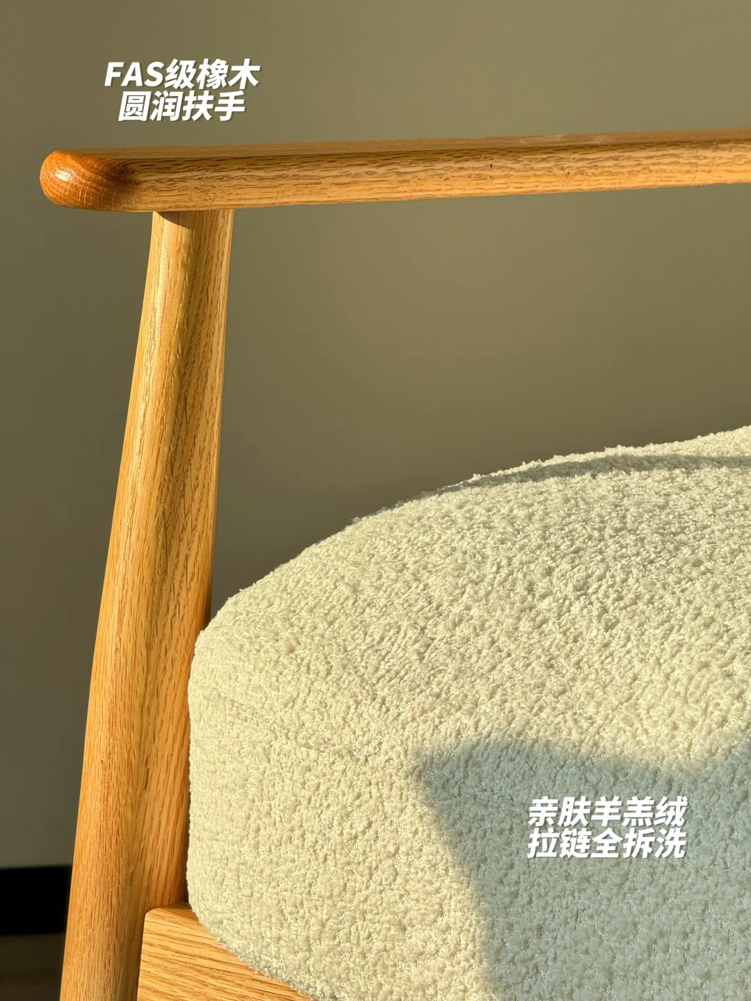 [斜眼R]沙发椅的坐感是适中但有支撑力的那种,久坐也不会有软塌塌的感觉[赞R],羊羔绒🐑面料亲肤又好打理,再配上脚凳,整个人懒懒的😴,只想宅在这个角落,度过漫长夏日~