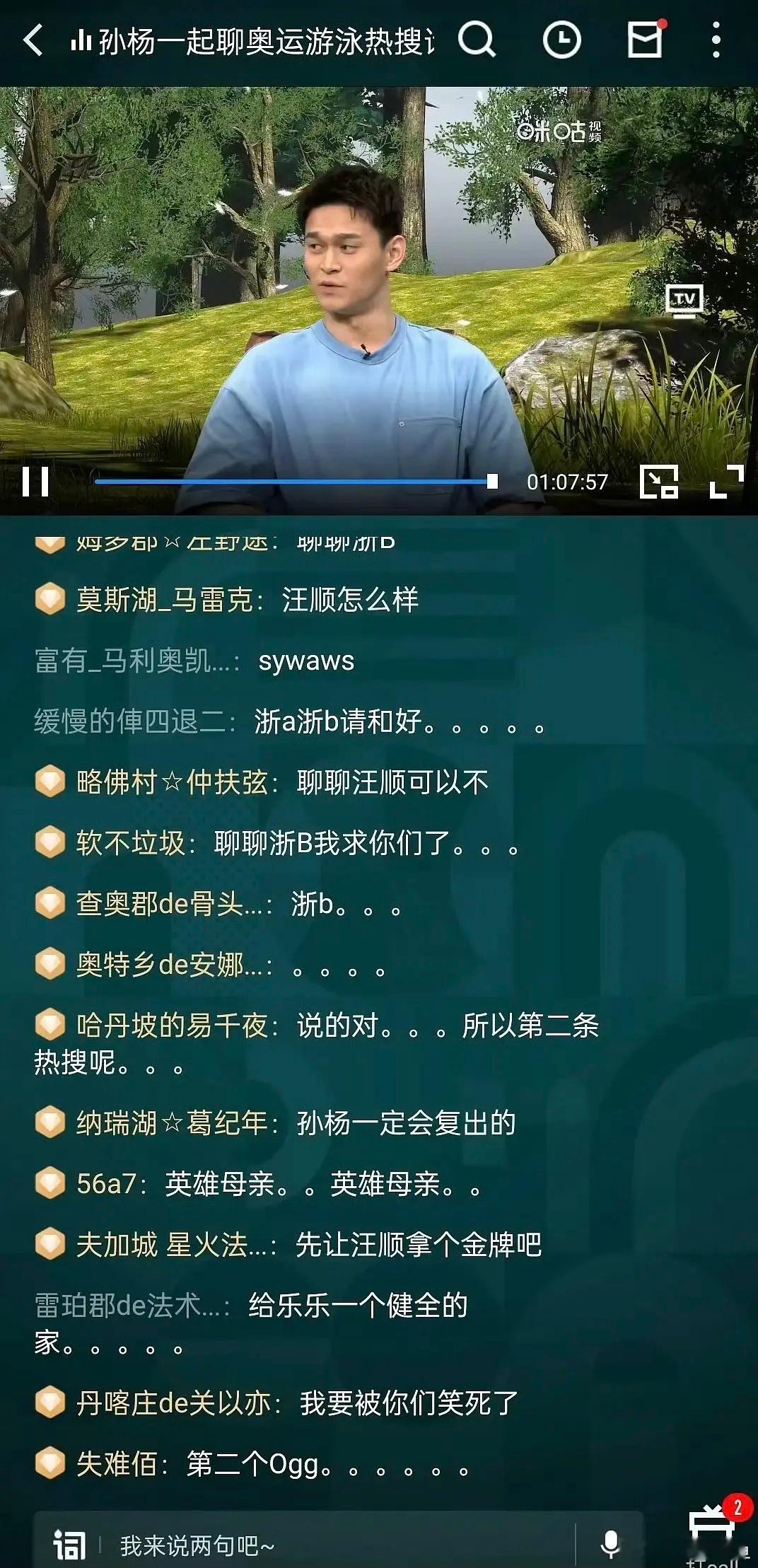孙杨直播间弹幕已被占领了