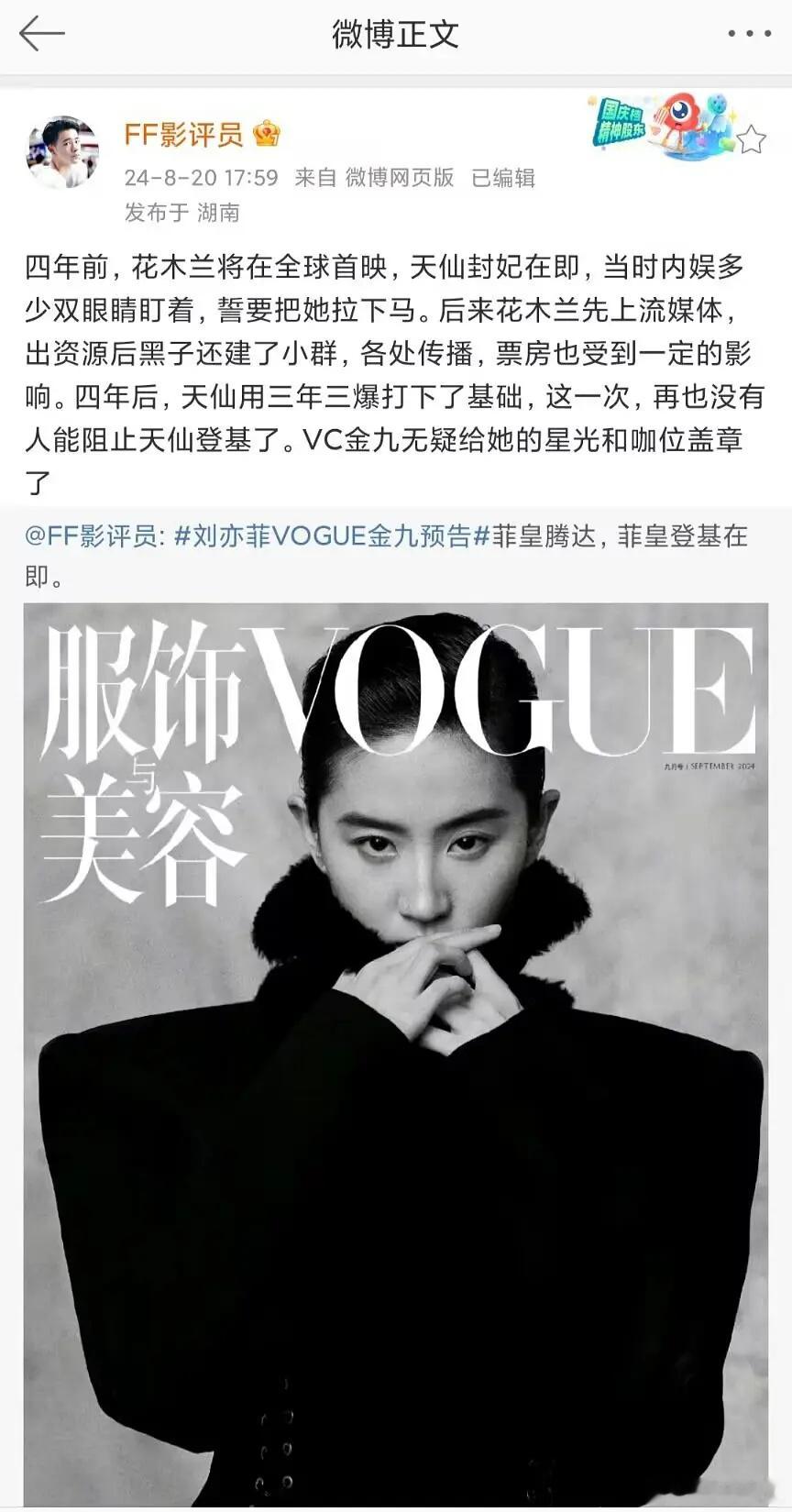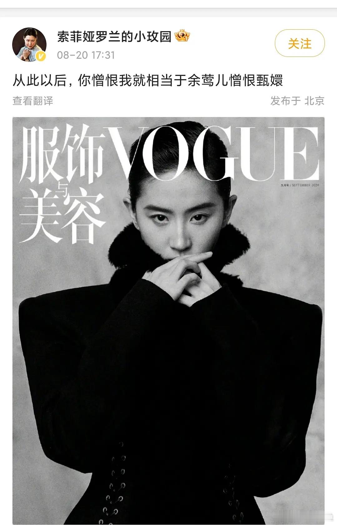 刘亦菲咖位虽然确实比85🌸高一点,但这通稿也吹太过了吧 一股子高高在上的狂妄感,好爹味啊