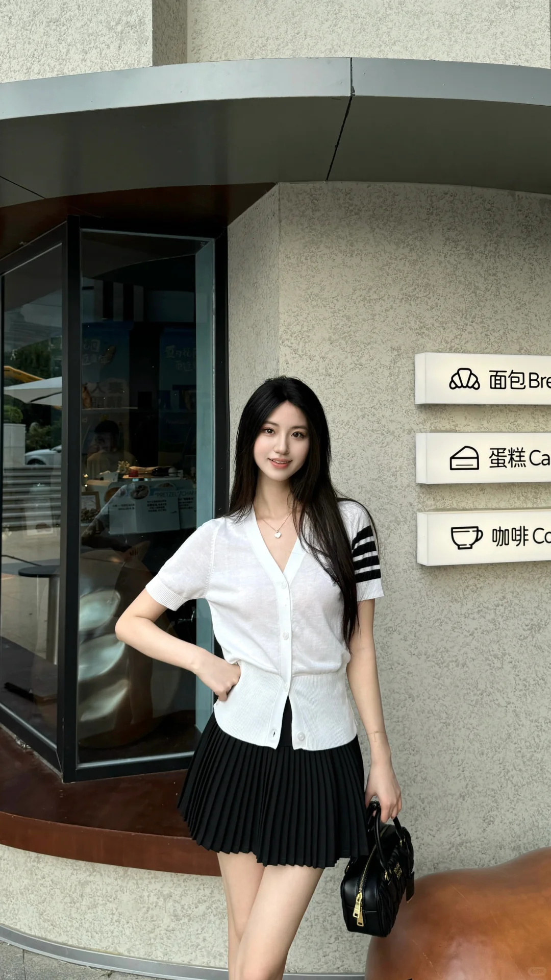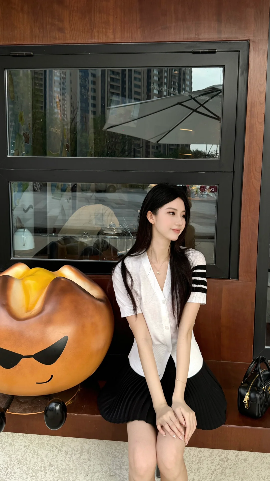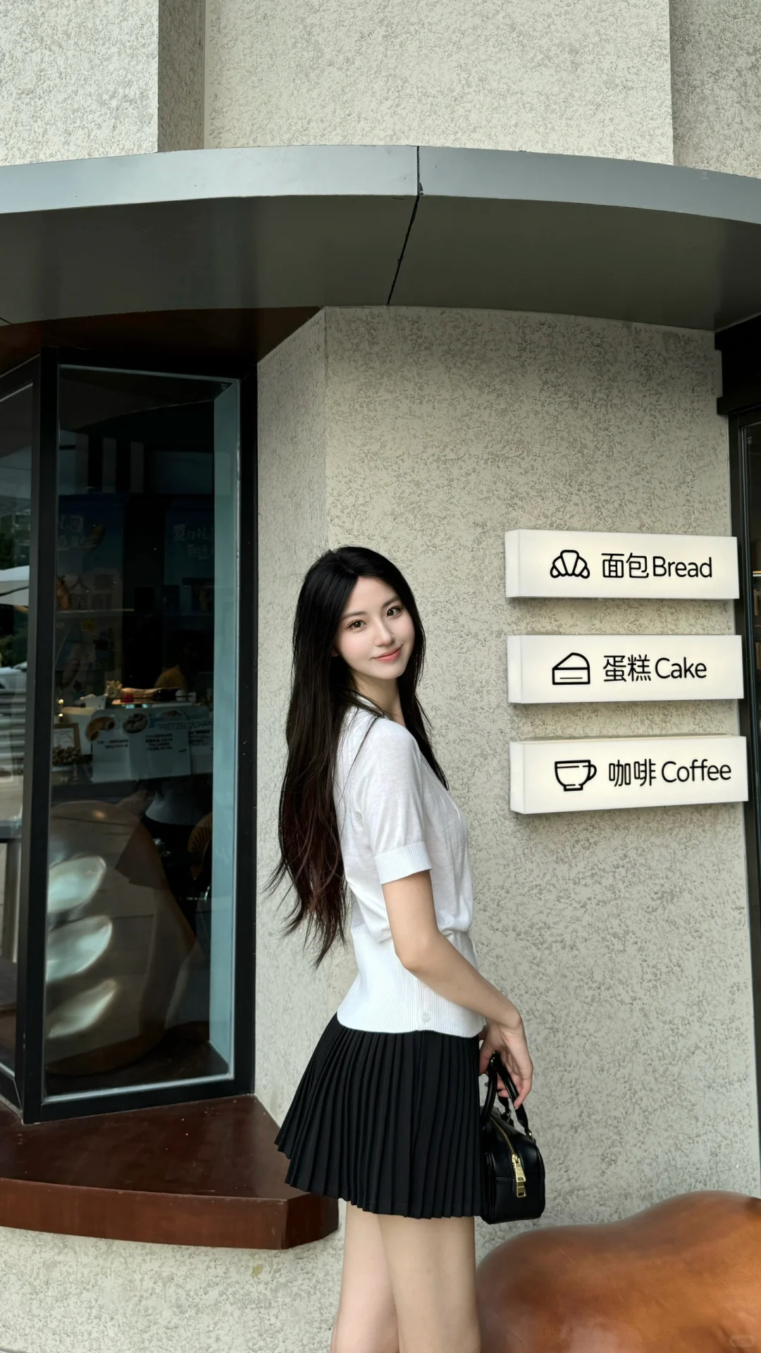 今日份的OOTD 简单干净嘟 家附近新开了一家面包店~ 有没有人跟我一样 所有面包里只喜欢碱水包
