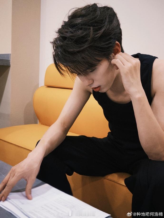 #何浩楠全黑look自拍##何浩楠无袖黑T# 何浩楠以全黑造型亮相,无袖黑T彰显