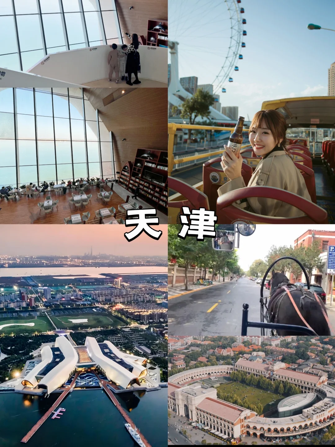 Day1:入住市内天津站附近,交通方便,白天逛五大道体验马车,临近傍晚到天津之眼坐落日双层巴士,晚上到海河游船看天津夜景。