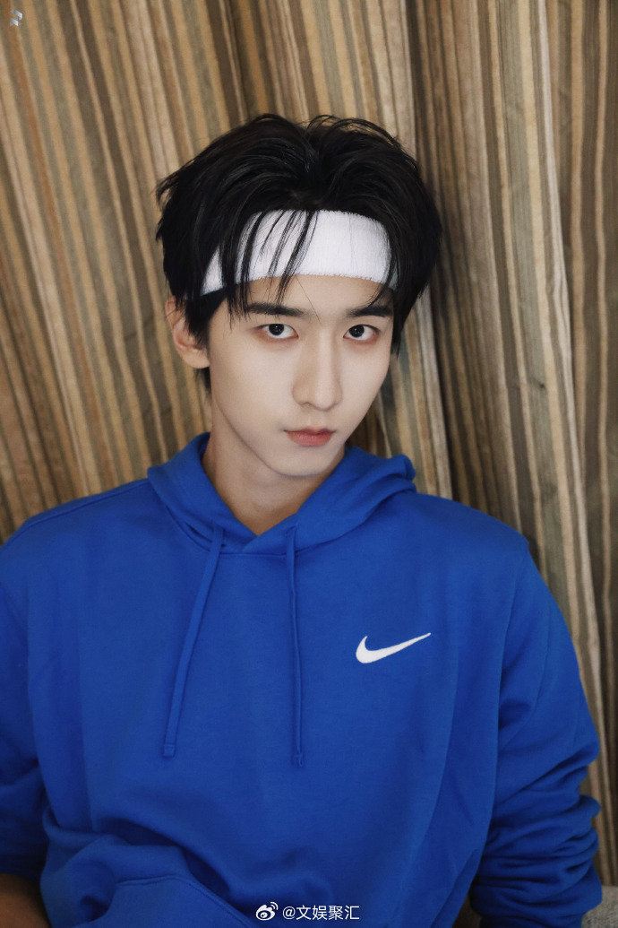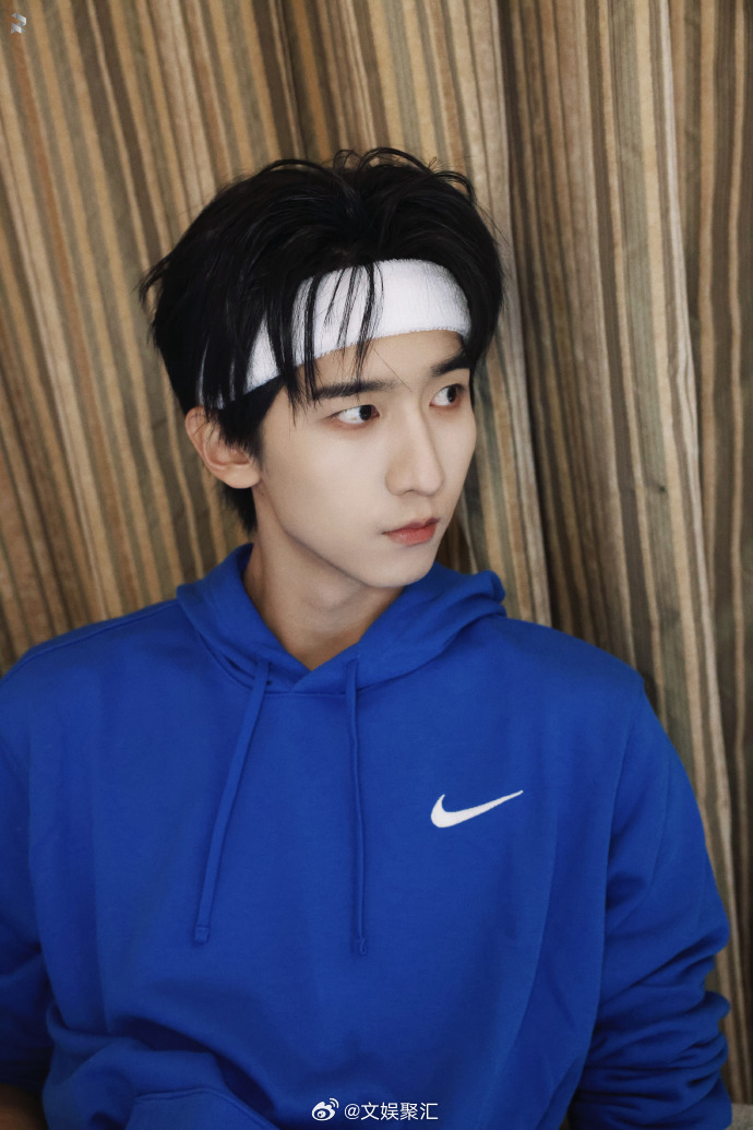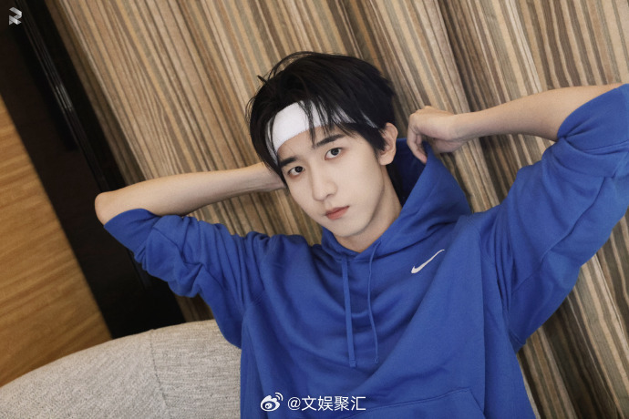 #赵让白色发带##赵让蓝色连帽卫衣# 白色发带下的赵让活力四射,蓝色连帽卫衣尽显