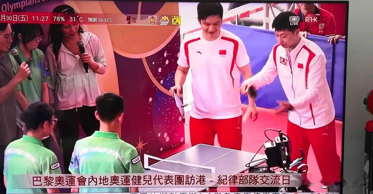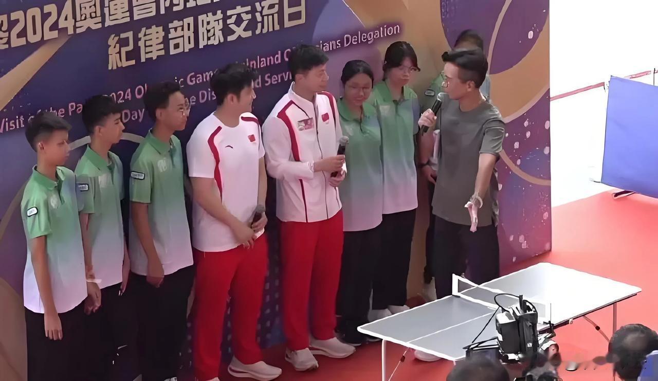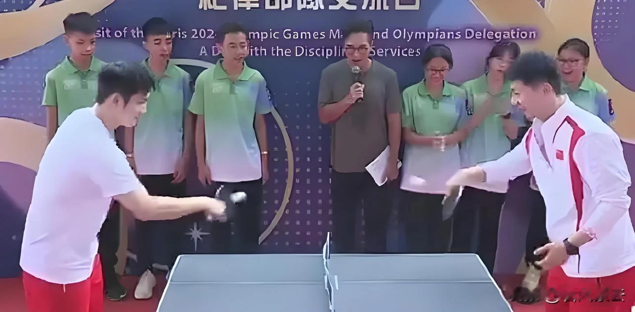 在8月30日的巴黎奥运会中国内地奥运健儿与纪律部队及青少年制服团队的交流活动中,乒乓球界的杰出代表马龙与樊振东展现出了非凡的技艺与亲和力。他们不仅在超小球台上为青少年们进行了精彩的示范,还巧妙地运用锅盖、托盘、锅铲等日常厨具作为球拍,与青少年们进行了一场别开生面的互动。