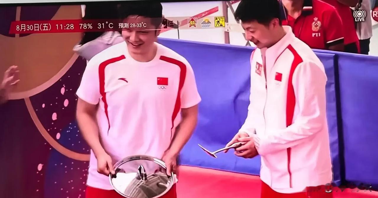 马龙拿铲子樊振东锅盖难道是“厨艺大比拼”吗?