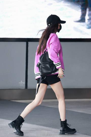 #杨幂紫色棒球服配黑短裤##杨幂紫色棒球服长沙路透# 杨幂的紫色棒球服造型,时尚